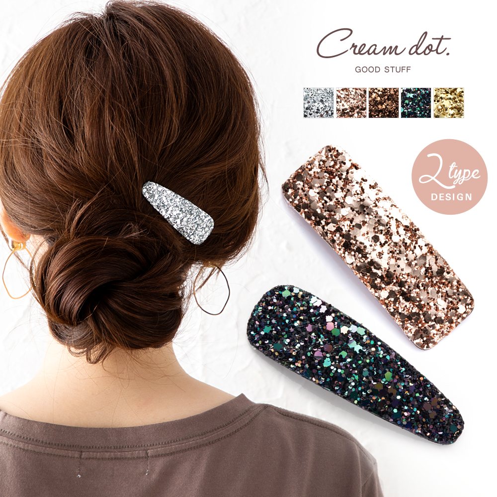 ランダムに散りばめられたラメがキラキラと光を反射し煌めく2typeのパッチンヘアピン。たっぷりのラメが存在感抜群の主役級アイテム。どんなヘアスタイルにも取り入れやすく、スタイリングのワンポイントに活躍します◎