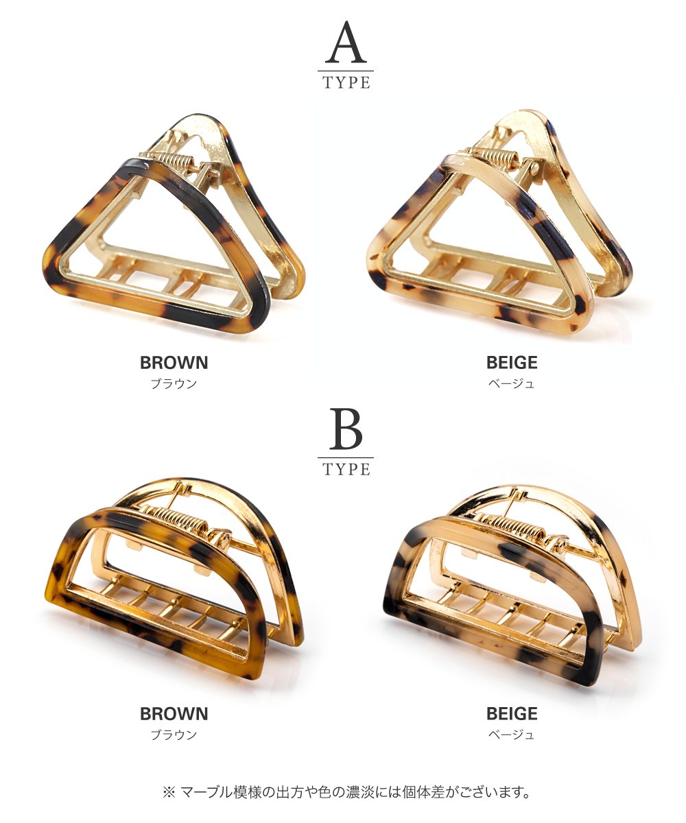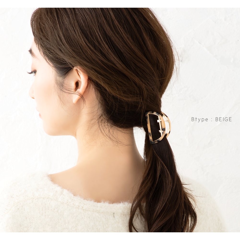 シックなべっ甲風フレームの内側を、ゴールドのラインで縁取った大人めバンスクリップ。三角/半円のすっきりとしたデザインと、大きすぎない程よいサイジングが◎アレンジにさっと挟むだけで雰囲気のある仕上がりに。