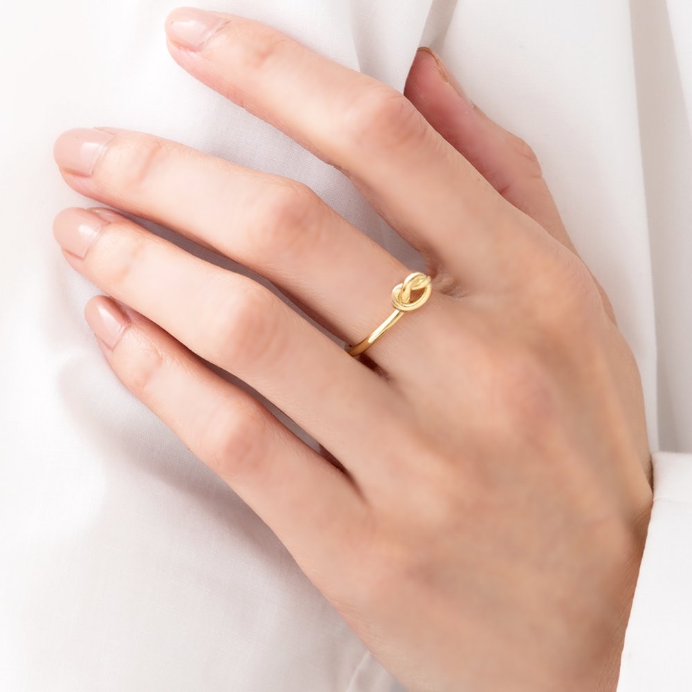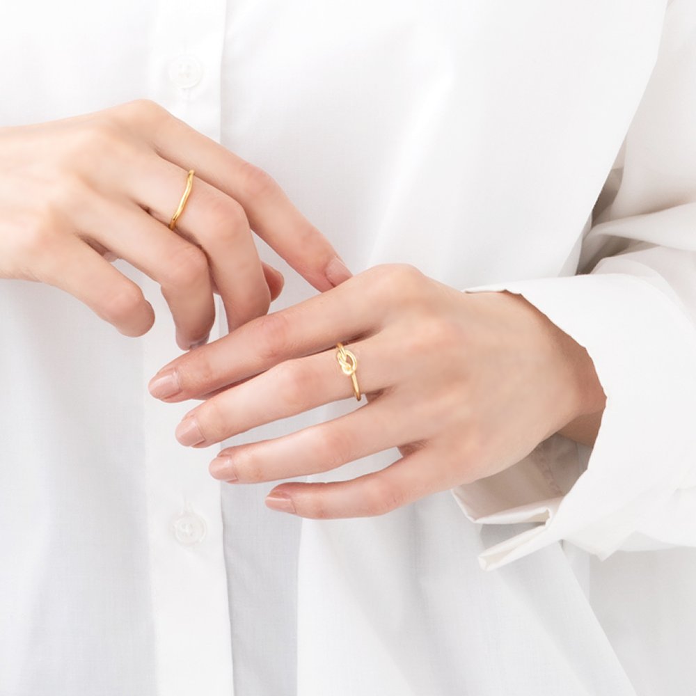 シンプルなラインと結び目モチーフで、さりげなく個性が光るステンレスリング。丸みのある緩やかなラインは大人フェミニンなコーデにも相性◎錆びにくいステンレス製でデイリーに活躍しそう。