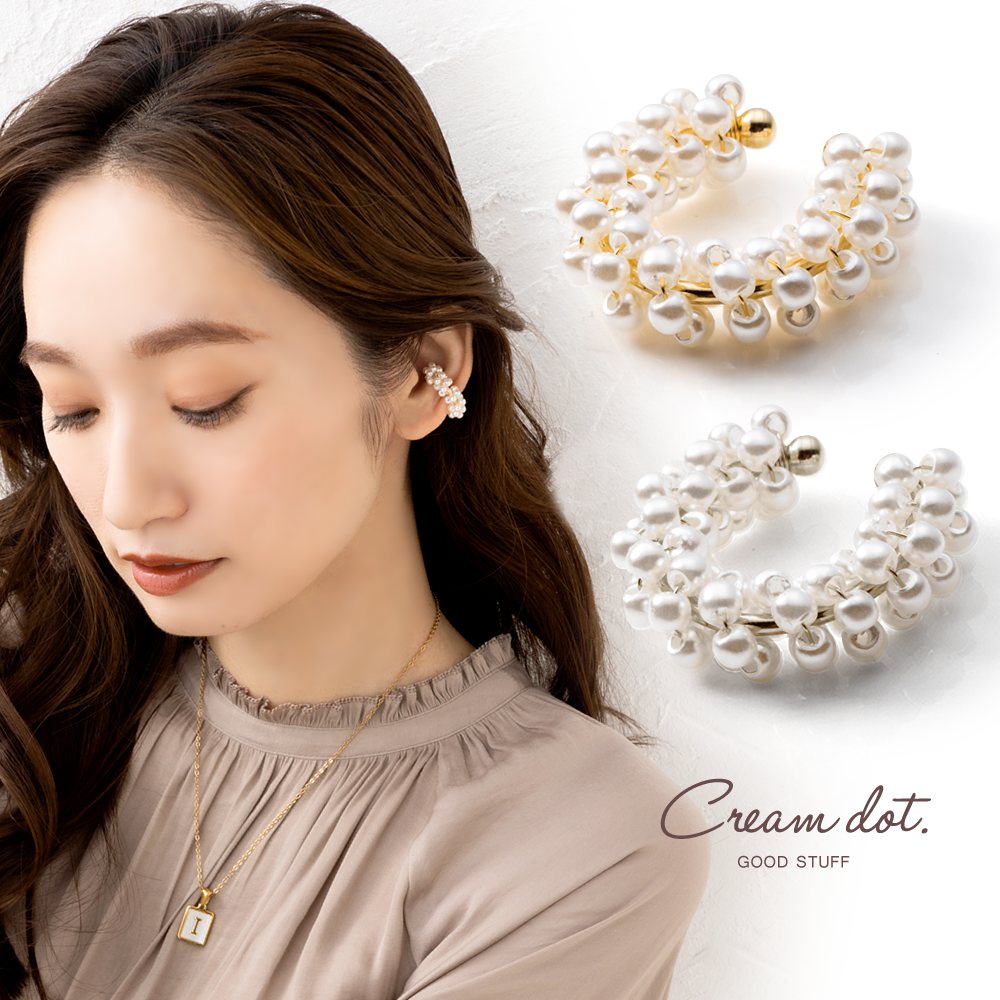 パールビーズを巻き着けたラグジュアリーな雰囲気の片耳用イヤーカフ。程よいボリューム感で耳元をパッと華やかに印象付けます。いつものコーデをより女性らしく演出してくれるひと品です。