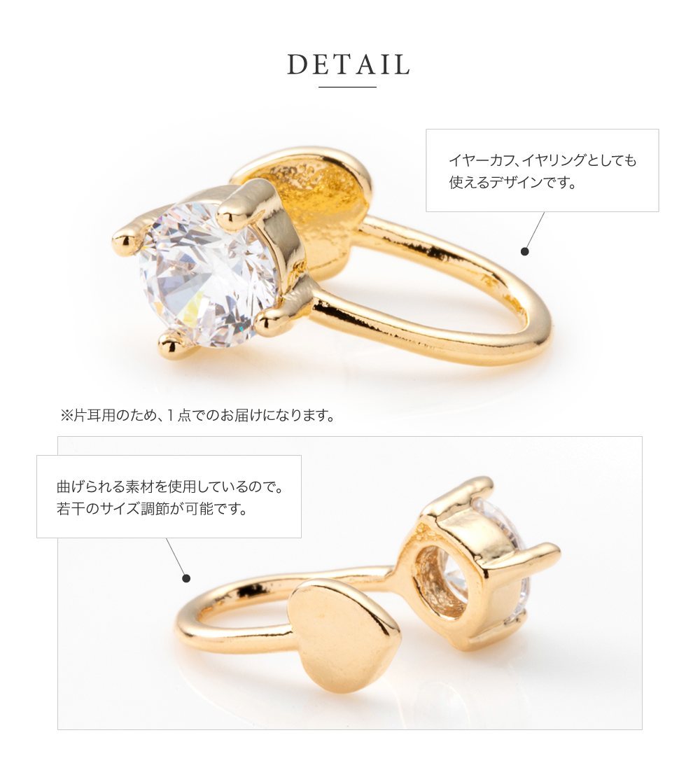 耳のトラガス部分につける新感覚アクセサリー“トラカフ”。シンプルだけどキラキラと煌く大粒のビジューモチーフがお顔周りのワンポイントにぴったり。ピアスやイヤーカフとの重ねづけも楽しめます◎