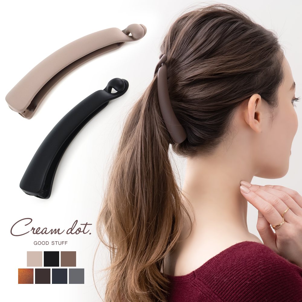ニュアンスカラーと艶消し質感が大人っぽいバナナクリップ。オケージョンを選ばないシンプルなフォルムと大きめのサイジングで、カジュアルなデイリーコーデはもちろんオフィスシーンにも最適◎