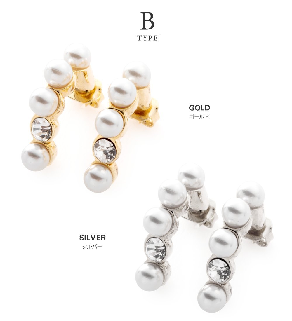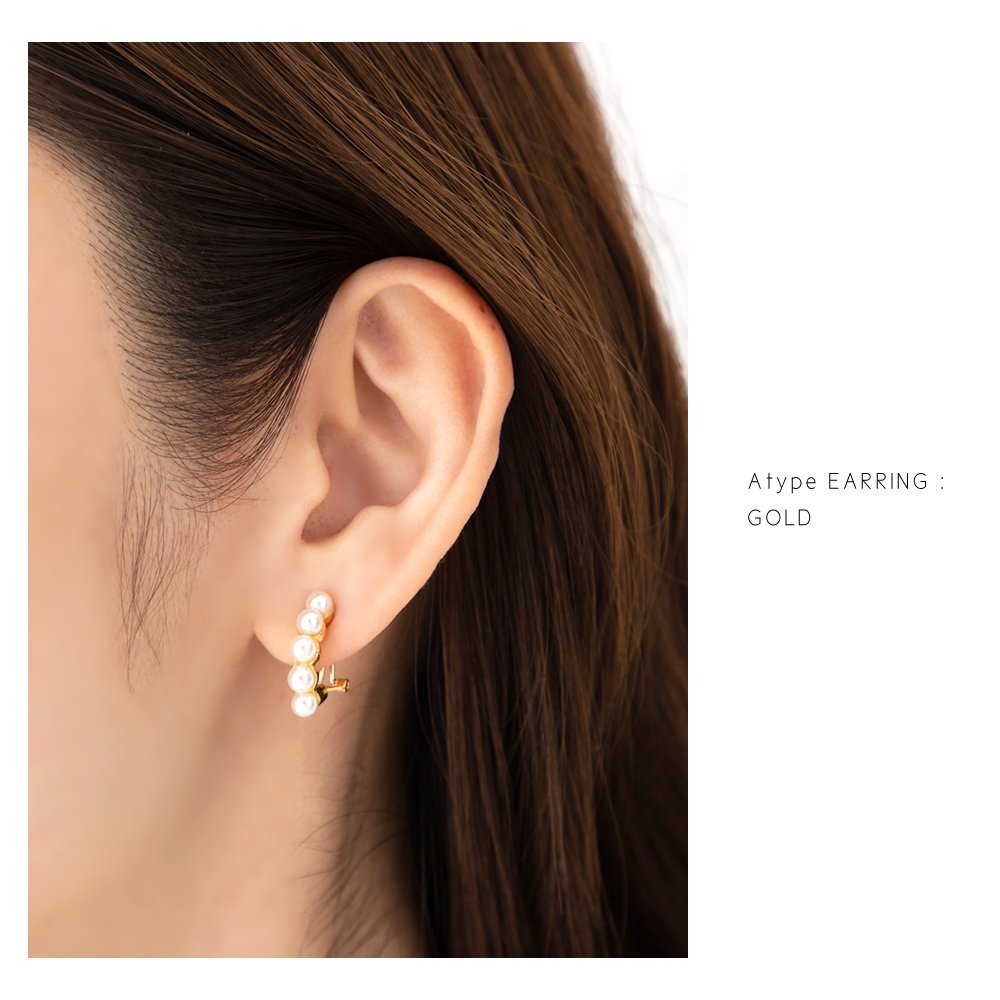 ビジューを加えたBタイプもご用意しました。柔らかな光を放つ程よいサイズ感のパールとシンプルなデザインが耳元を上品に演出。