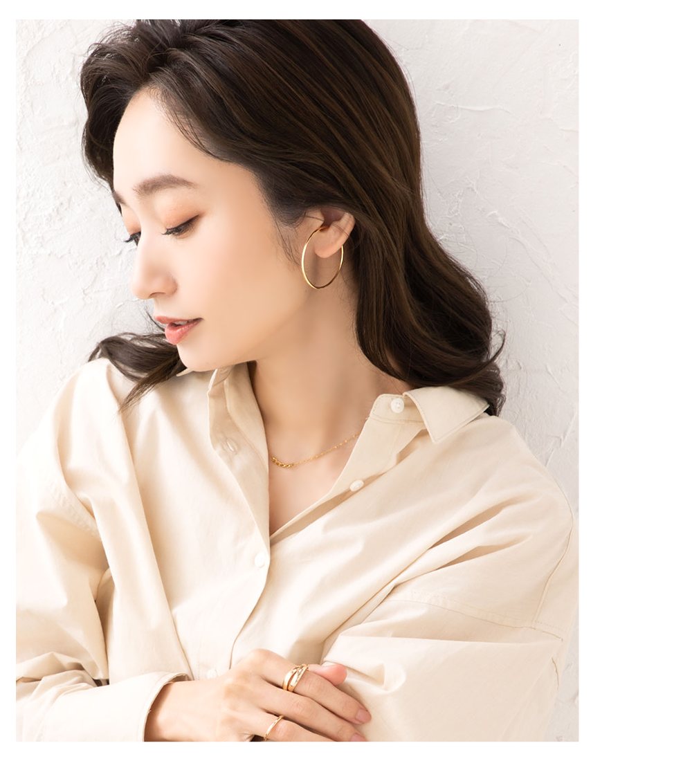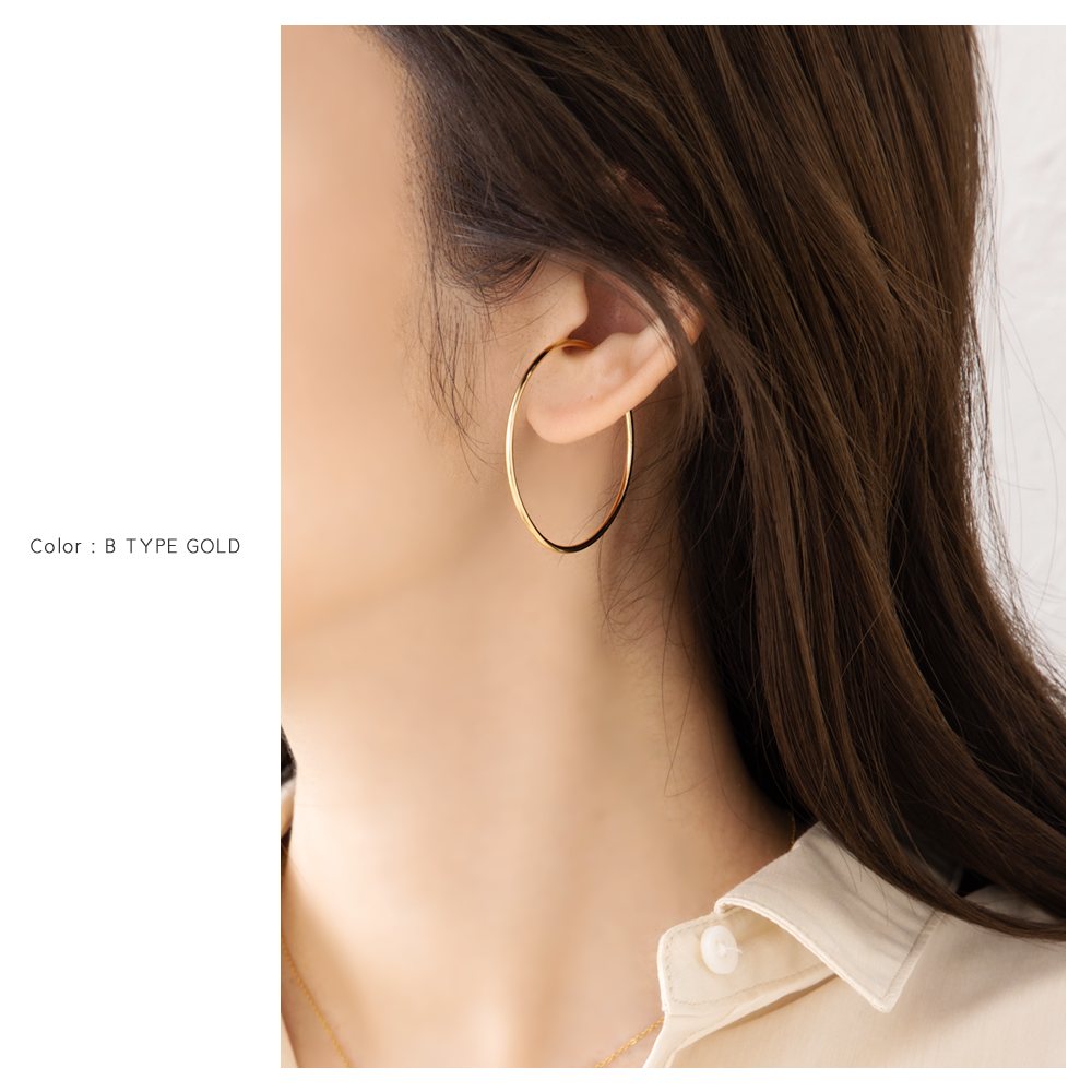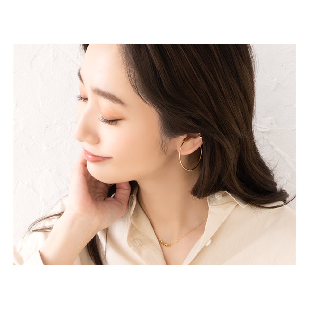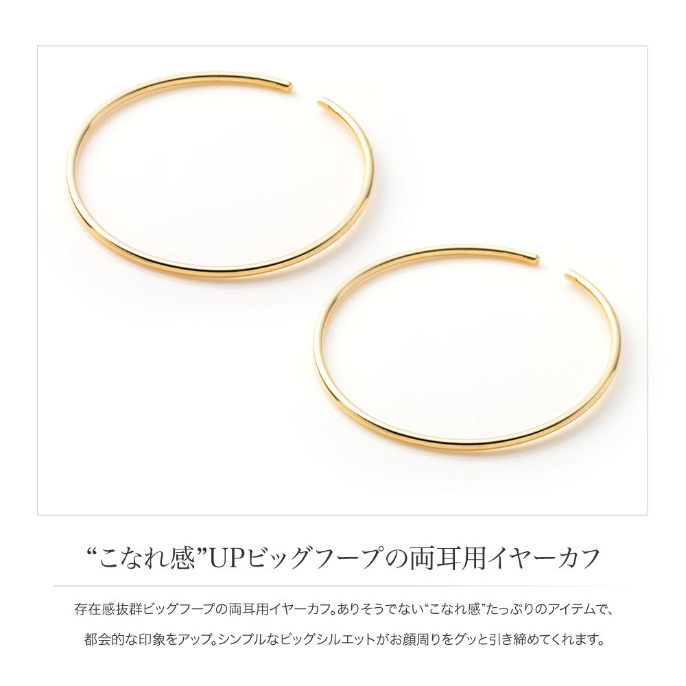 存在感抜群ビッグフープの両耳用イヤーカフ。ありそうでない“こなれ感”たっぷりのアイテムで、都会的な印象をアップ。シンプルなビッグシルエットがお顔周りをグッと引き締めてくれます。
