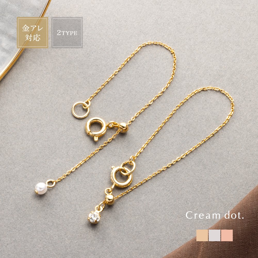 金属アレルギー対応 選べる2タイプ ネックレス アジャスター ニッケルフリー 18kコーティング 一粒ビジュー パール