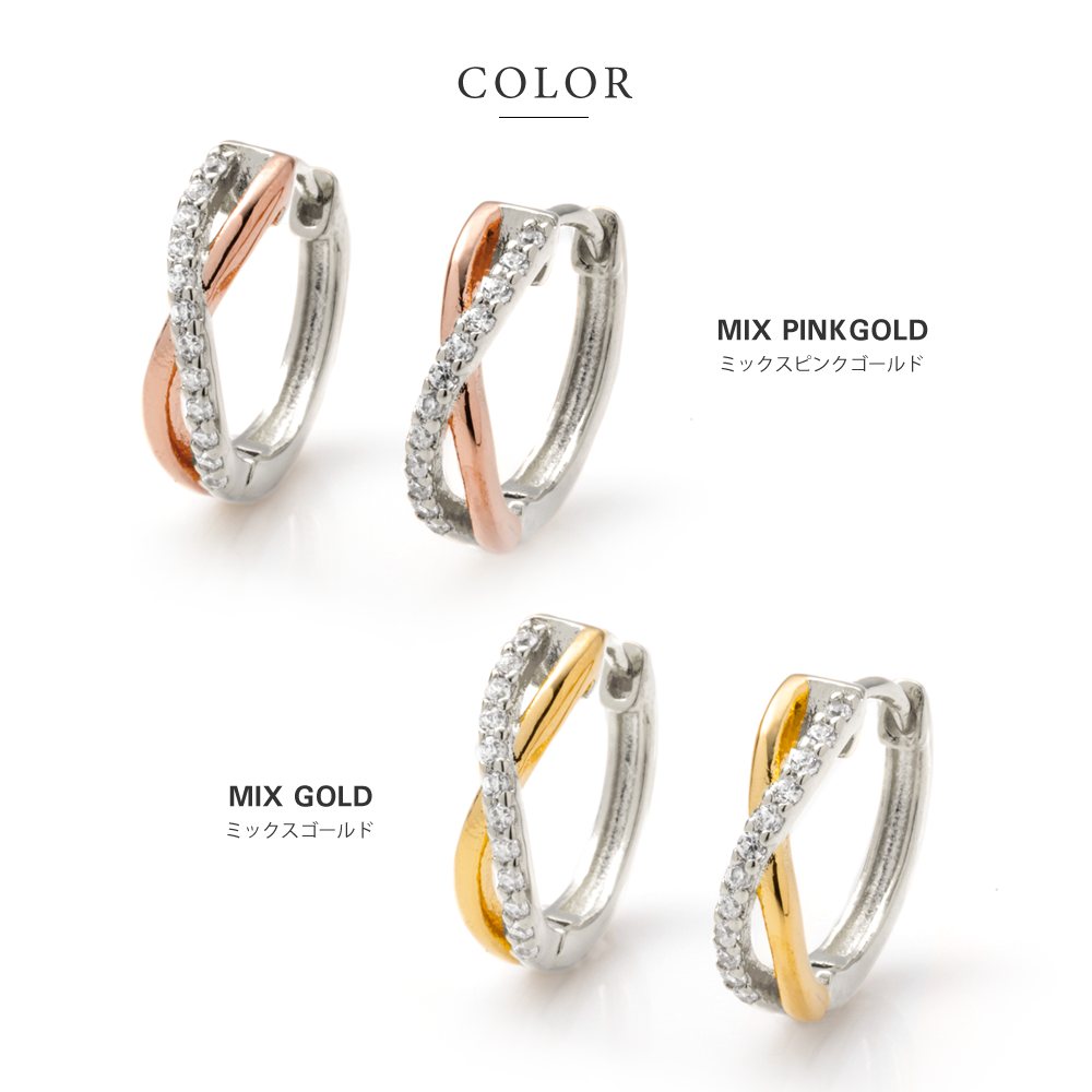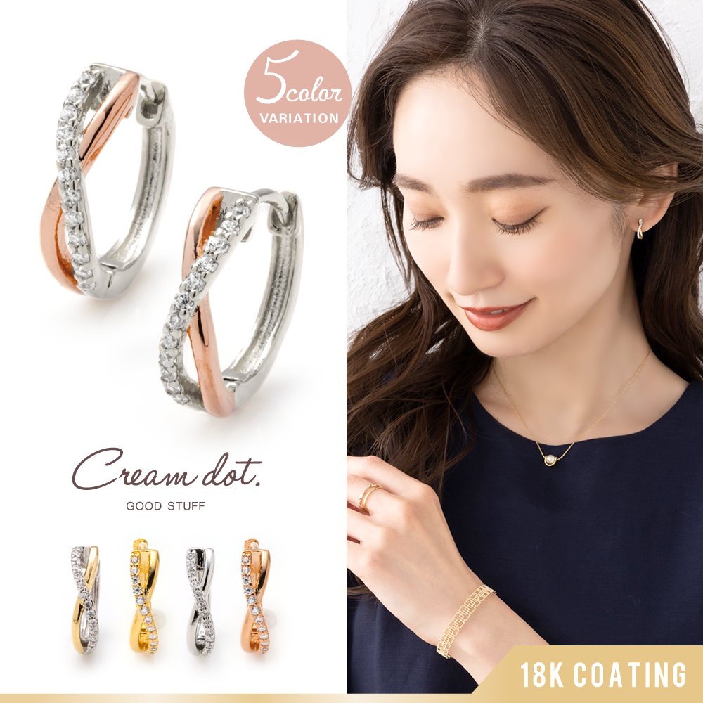 コンビカラーのダブルラインをクロスさせたピアスは、使いやすい大きさで他のアクセサリーとの相性も抜群!コーデやシーンに迷うことなくおしゃれが楽しめるヘビロテアイテムになること間違いなしです。