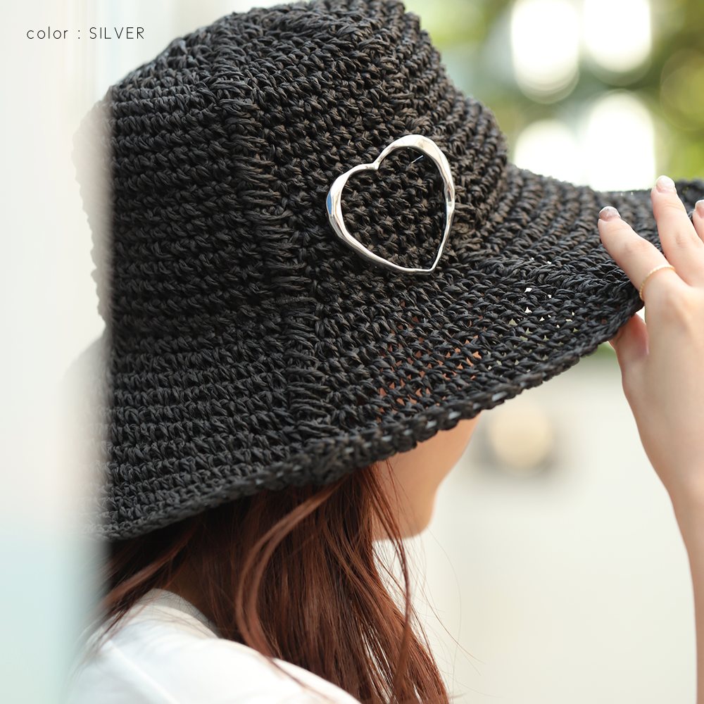 クラフト調のメタルハートモチーフが大人可愛く、女ゴコロくすぐるチャーミングな雰囲気を演出。大きめのサイジングでコーデのアクセントにぴったりなトレンドアイテムです。