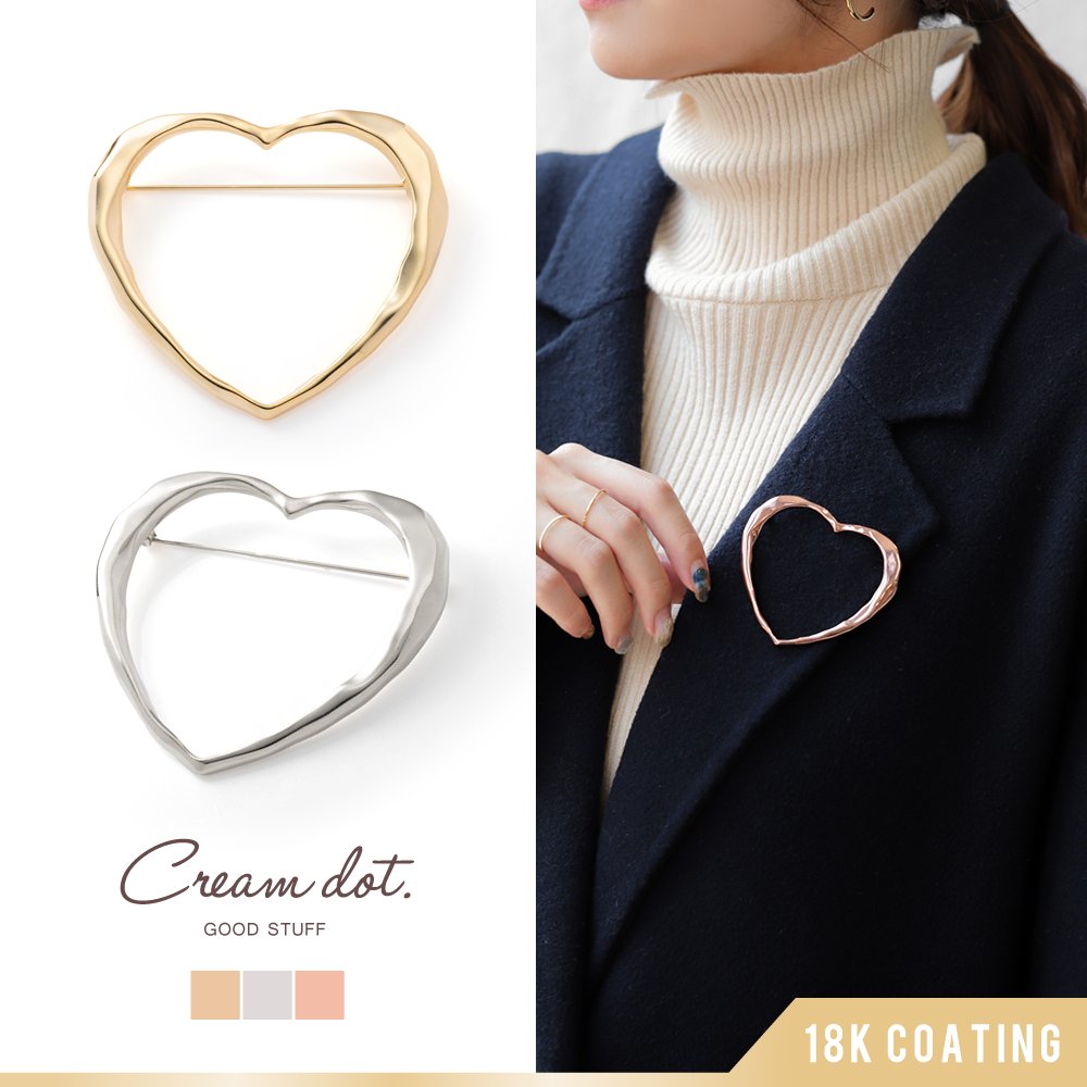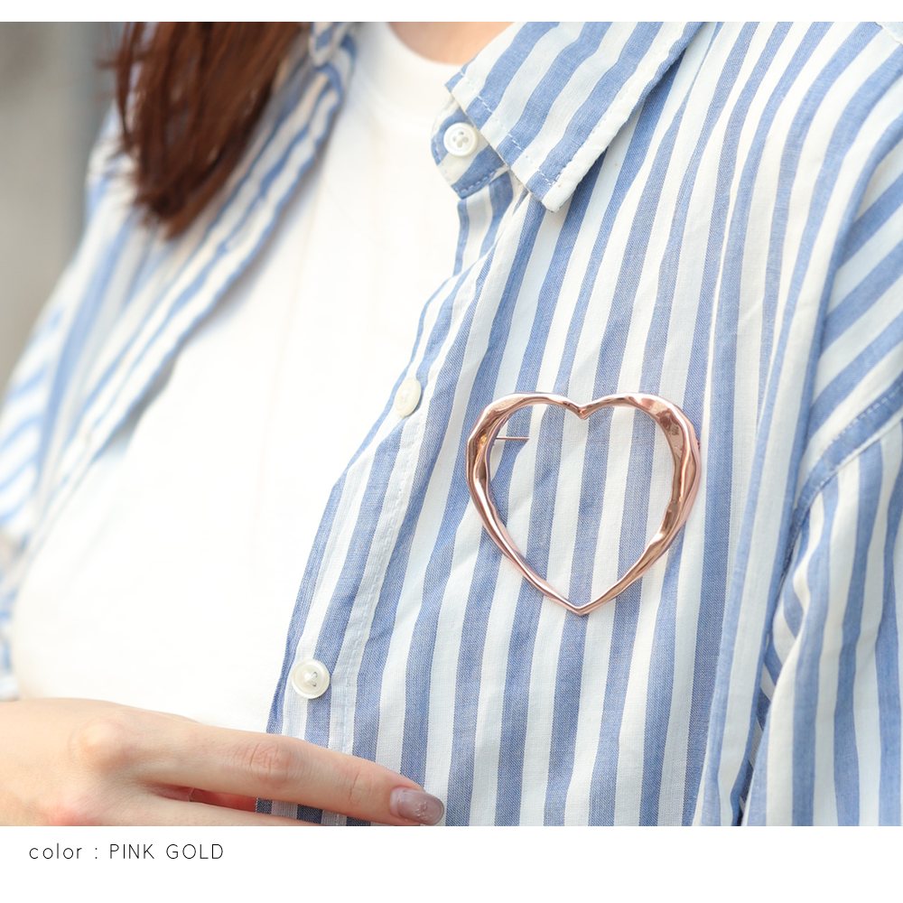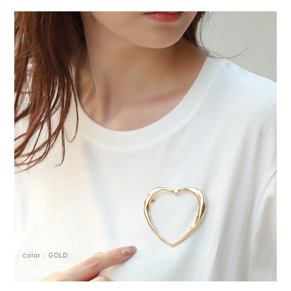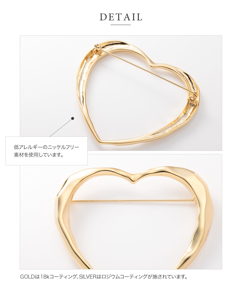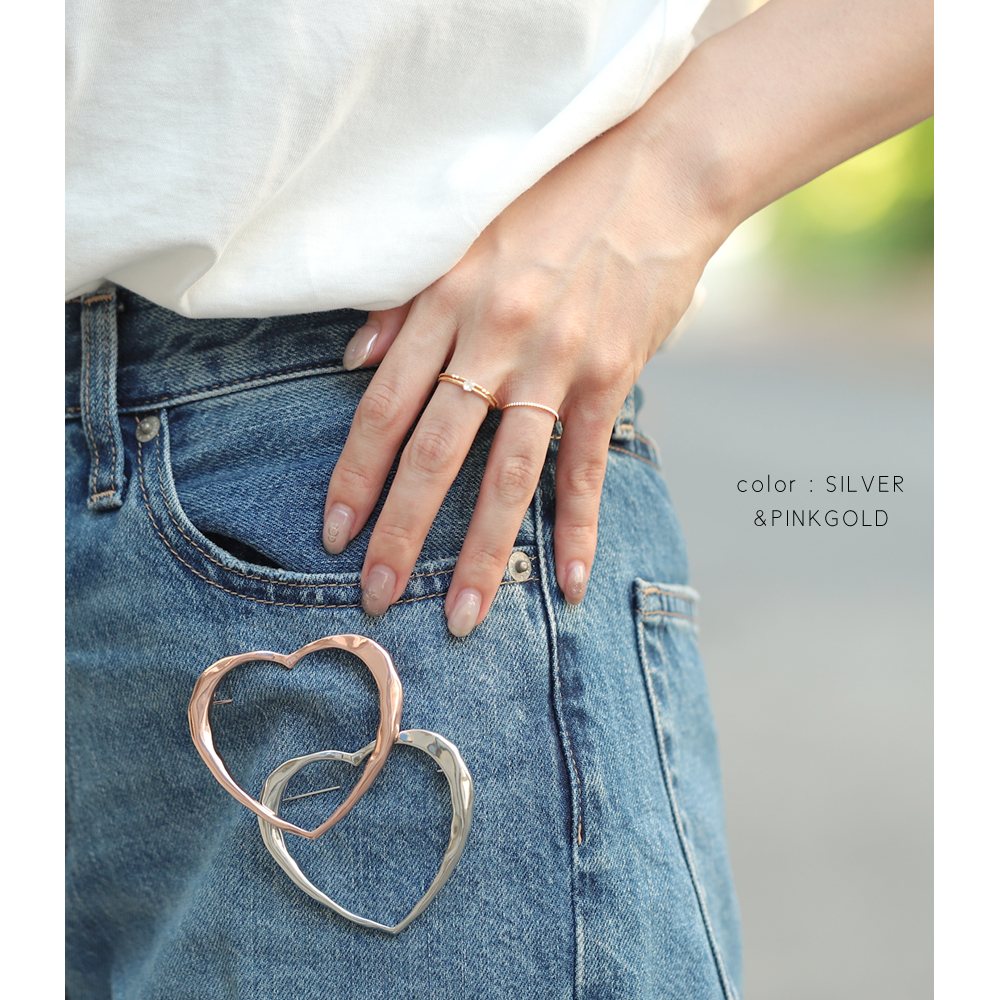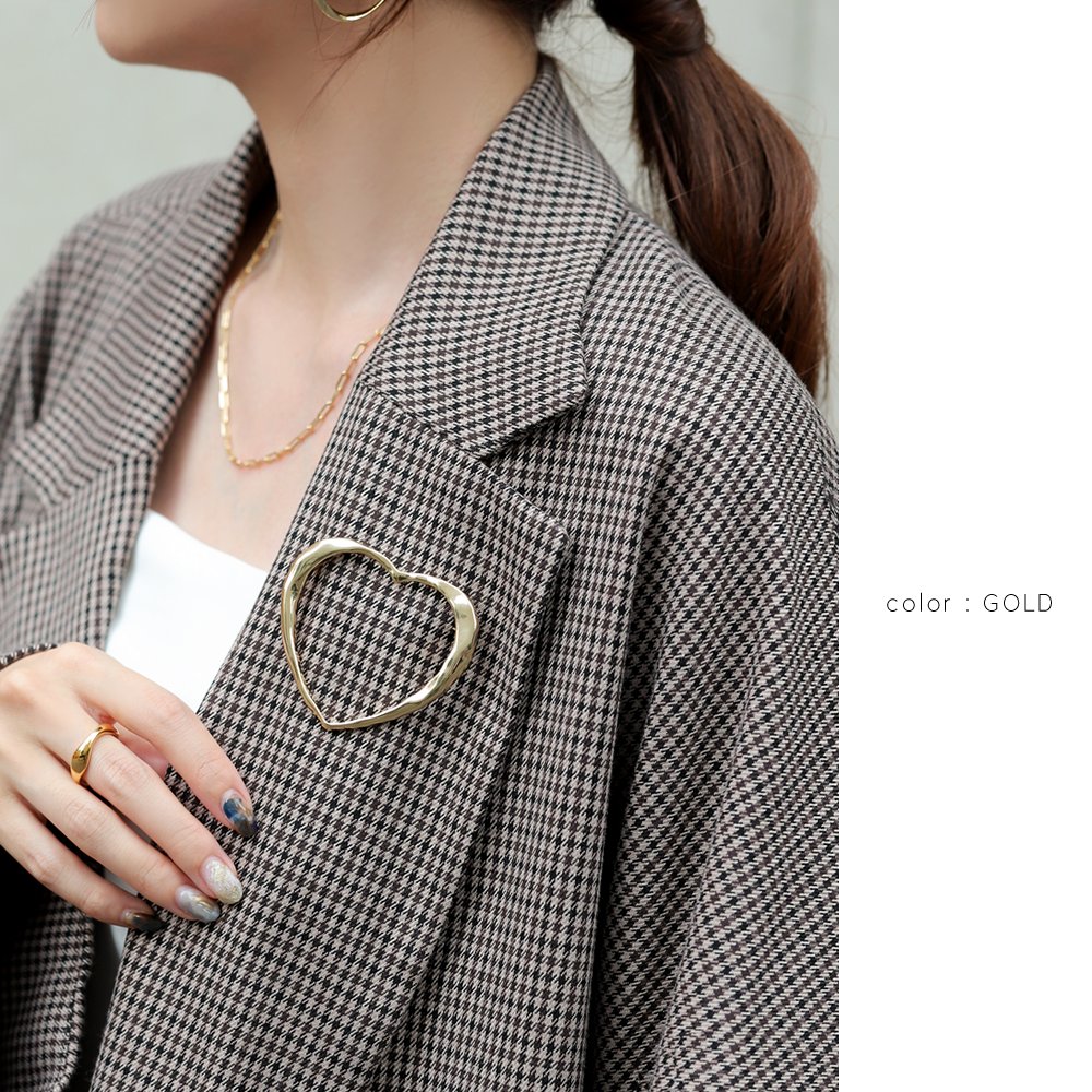 クラフト感のある歪なメタルラインが特徴的なハートモチーフのブローチ。お持ちのバッグやストール、ジャケットにプラスするだけで、普段とは違ったスタイリングが楽しめます。トレンド感がありながらも女心をくすぐるデザイン◎