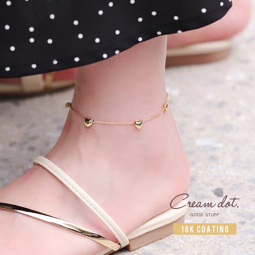 ぷっくりハートを等間隔に配置したステーションアンクレット。どんなアイテムとも合わせやすいから重ね着けにもおすすめ◎これひとつ持ってるとコーデの幅がグッと広がります。