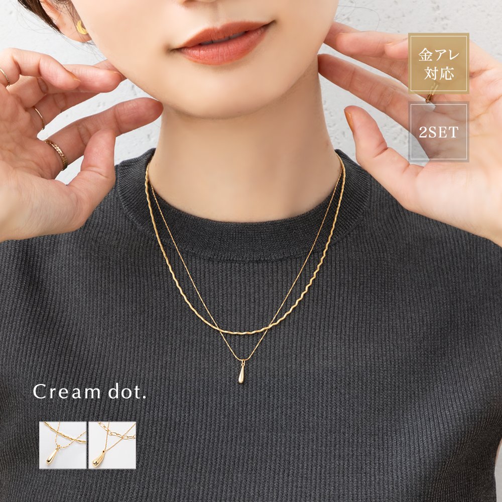 【全品10%OFFクーポン】金属アレルギー対応 2点セット ネックレス ニッケルフリー 18kコーティング チェーン ドロップ ウェーブ オーバル