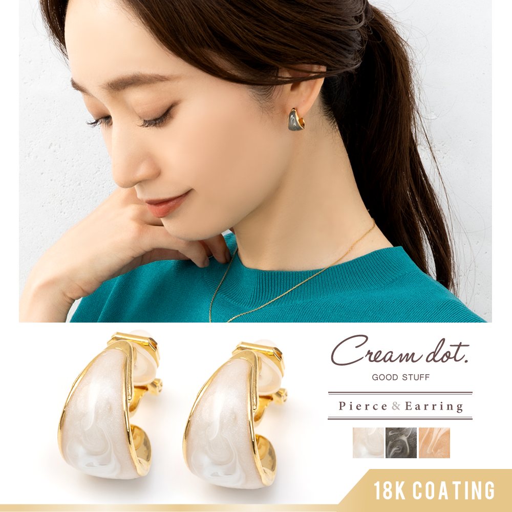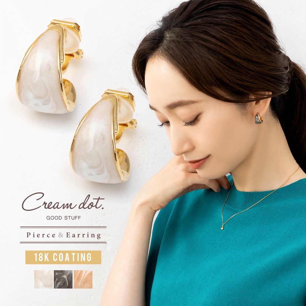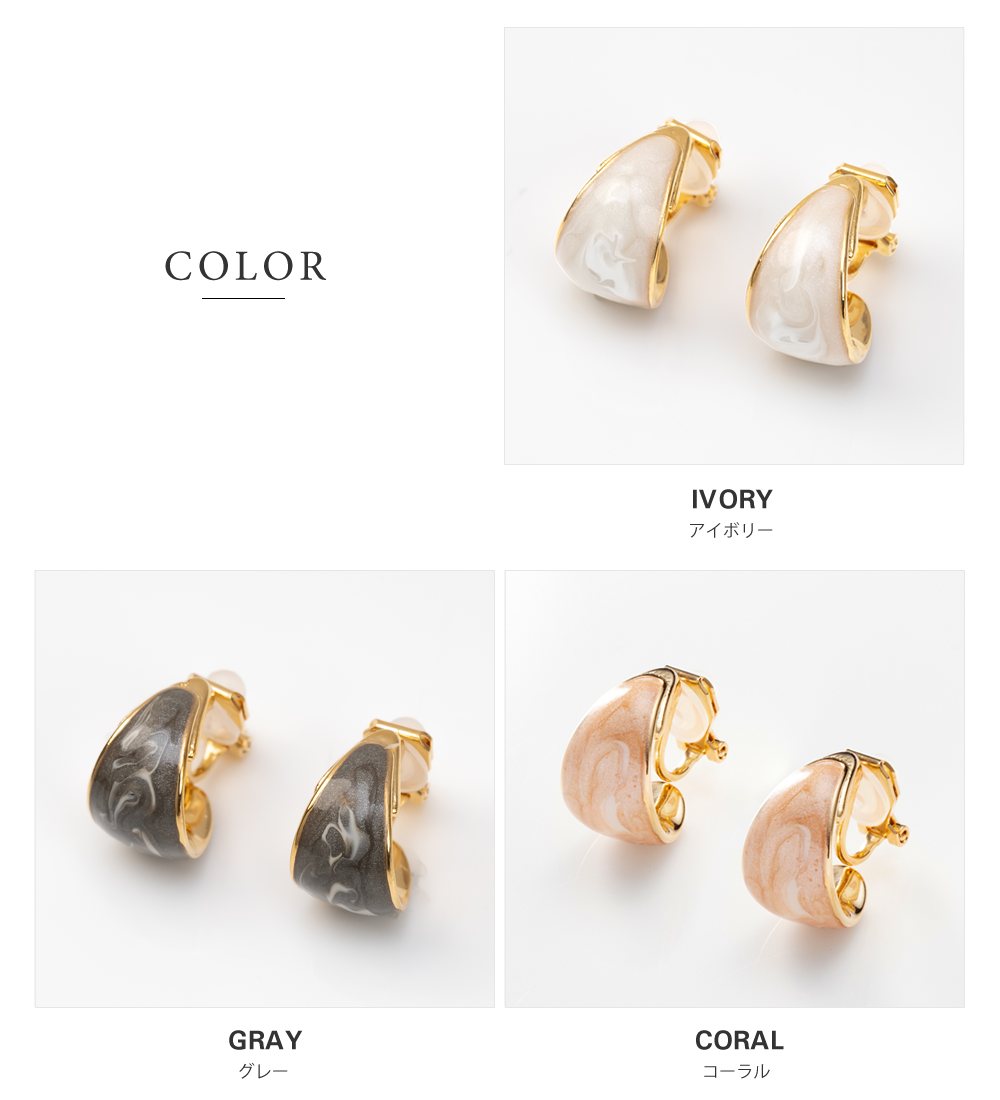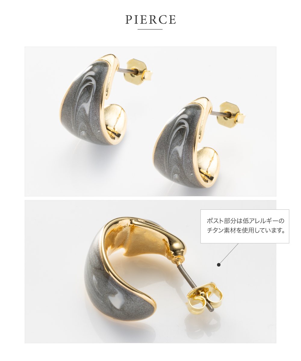 【本日限定!全品10%OFFクーポン】選べる イヤリング ピアス 金属アレルギー ニッケルフリー 18kコーティング チタンポスト レディース フープ マーブル