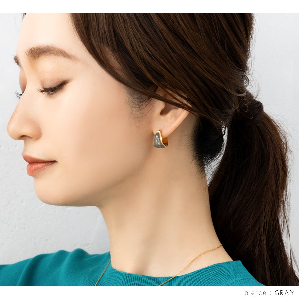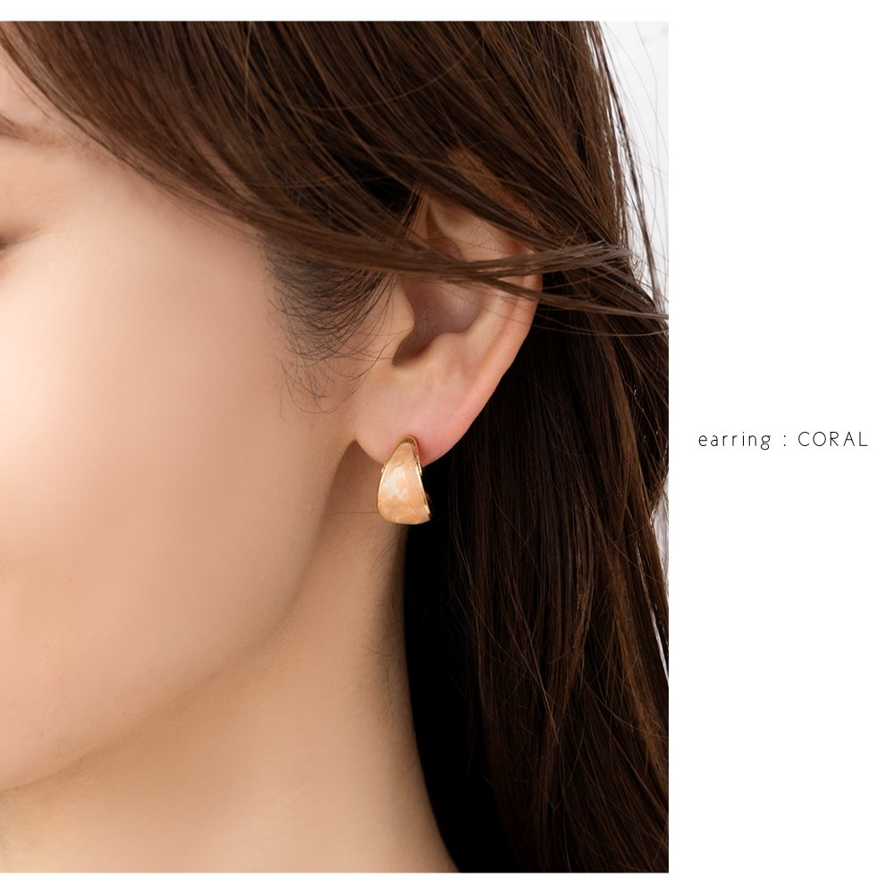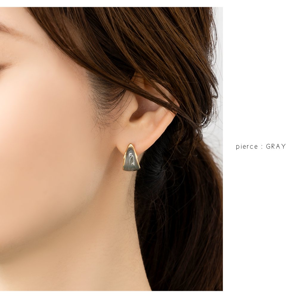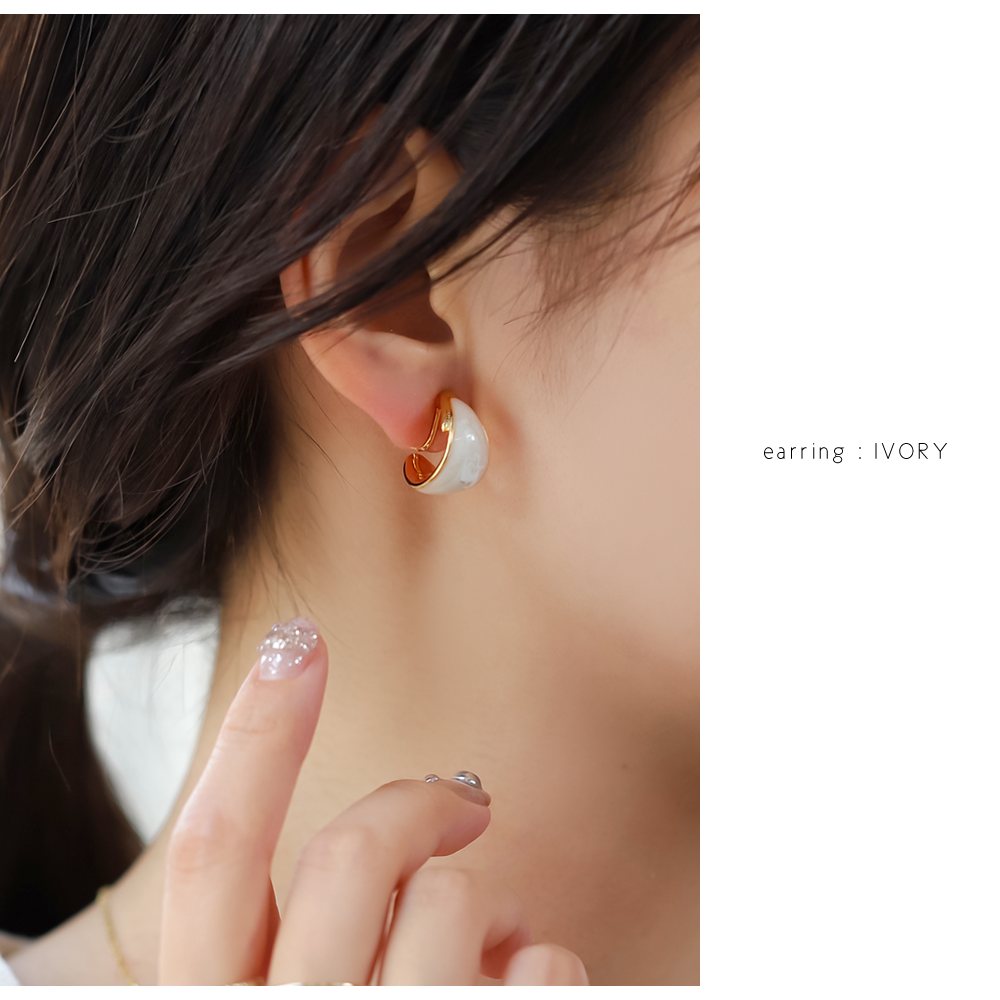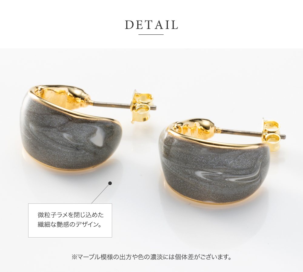 絶妙なカラーのマーブル模様が目を惹くイヤリング/ピアス。微粒子ラメを閉じ込めた繊細な艶めきが大人コーデのアクセントにピッタリなひと品。コロンとしたフォルムとサイズ感で品良く仕上がるアイテムです。