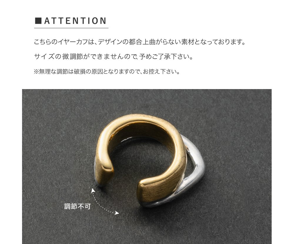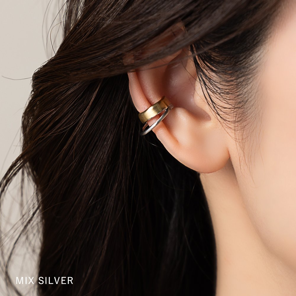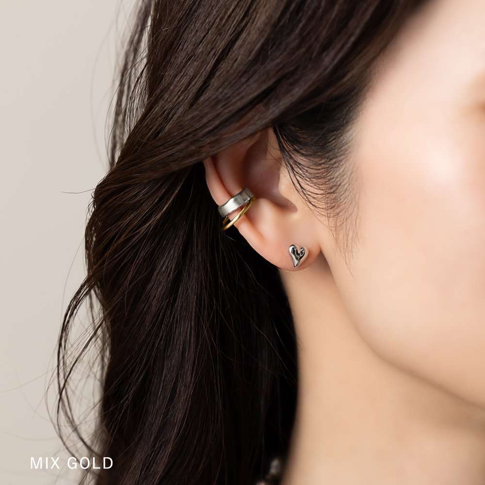 MIXカラーのヴィンテージ調スタックイヤーカフ。ちょっぴり歪なフォルムとこなれた雰囲気のマットな質感がヴィンテージライクでニュアンス漂う逸品。トレンドのMIXカラーで旬顔にチェンジ◎