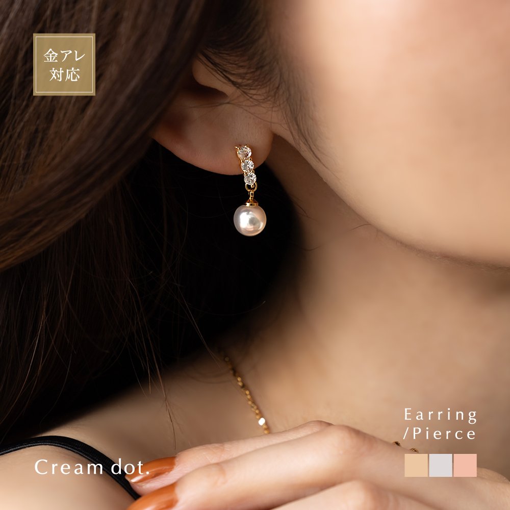 3粒のビジューとパールを組み合わせた華やかなイヤリング/ピアス。ビジューがさりげなく煌めき、艶やかパールが上品見えする女性らしいデザイン。普段使いはもちろん、結婚式・お呼ばれ・パーティーシーンなどで活躍すること間違いなしのアイテムです。低アレルギーのニッケルフリー素材を使用しているので、長時間の着用も安心です。