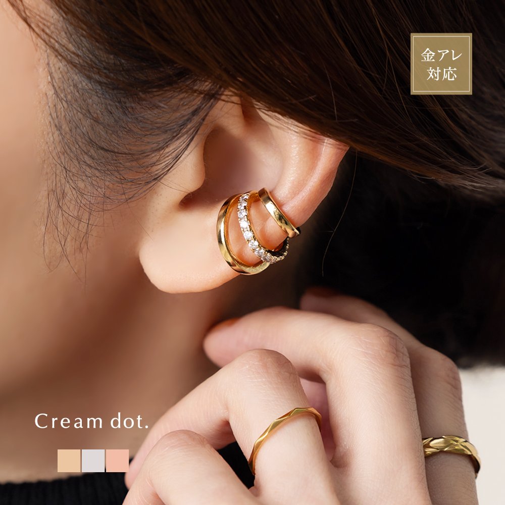 【本日限定!全品10%OFFクーポン】イヤーカフ 金属アレルギー ニッケルフリー 18kコーティング レイヤード風 3連 ビジュー フープ 片耳用 重ねづけ