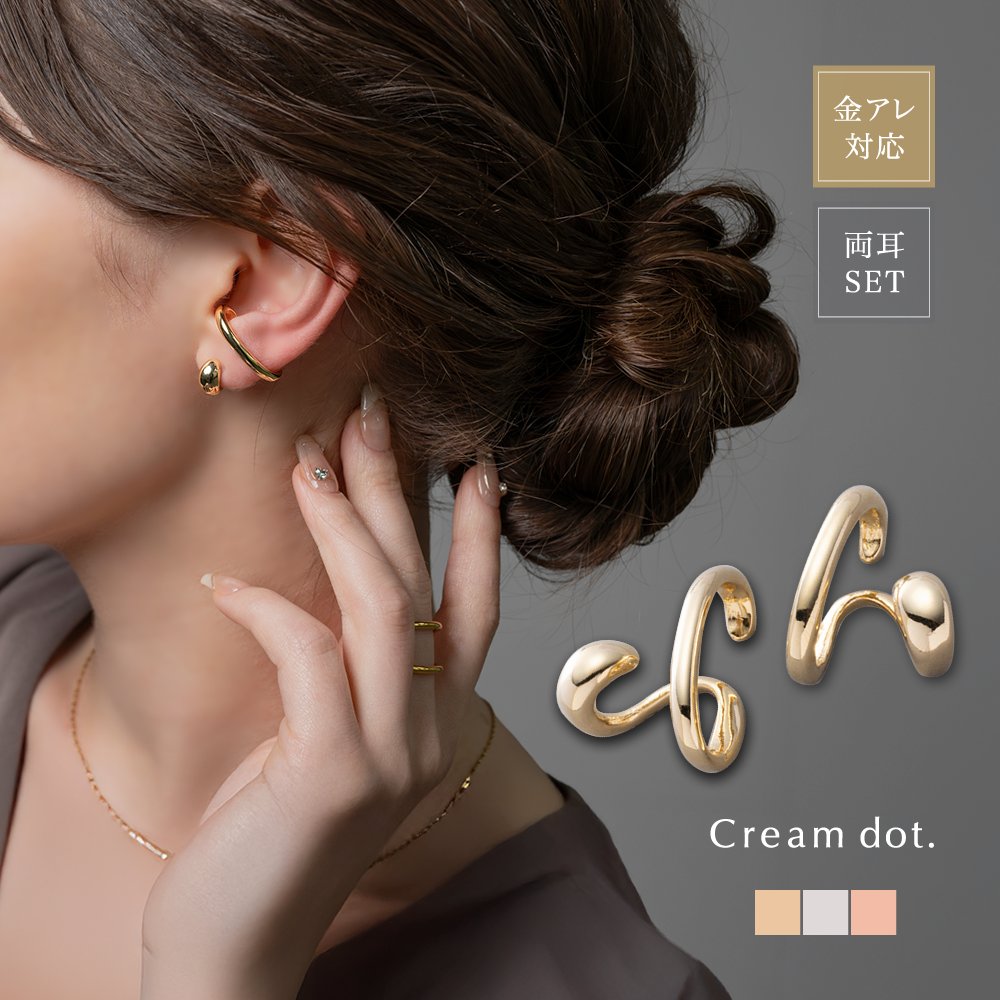 ぷっくりシルエットのカーブラインメタルがお洒落な両耳用イヤーカフ。耳に絡みつくような洗練されたレイヤードデザインで、デイリーからオフィスまで幅広く活躍しそう◎低アレルギーのニッケルフリー素材を使用しているので、長時間の着用も安心です。
