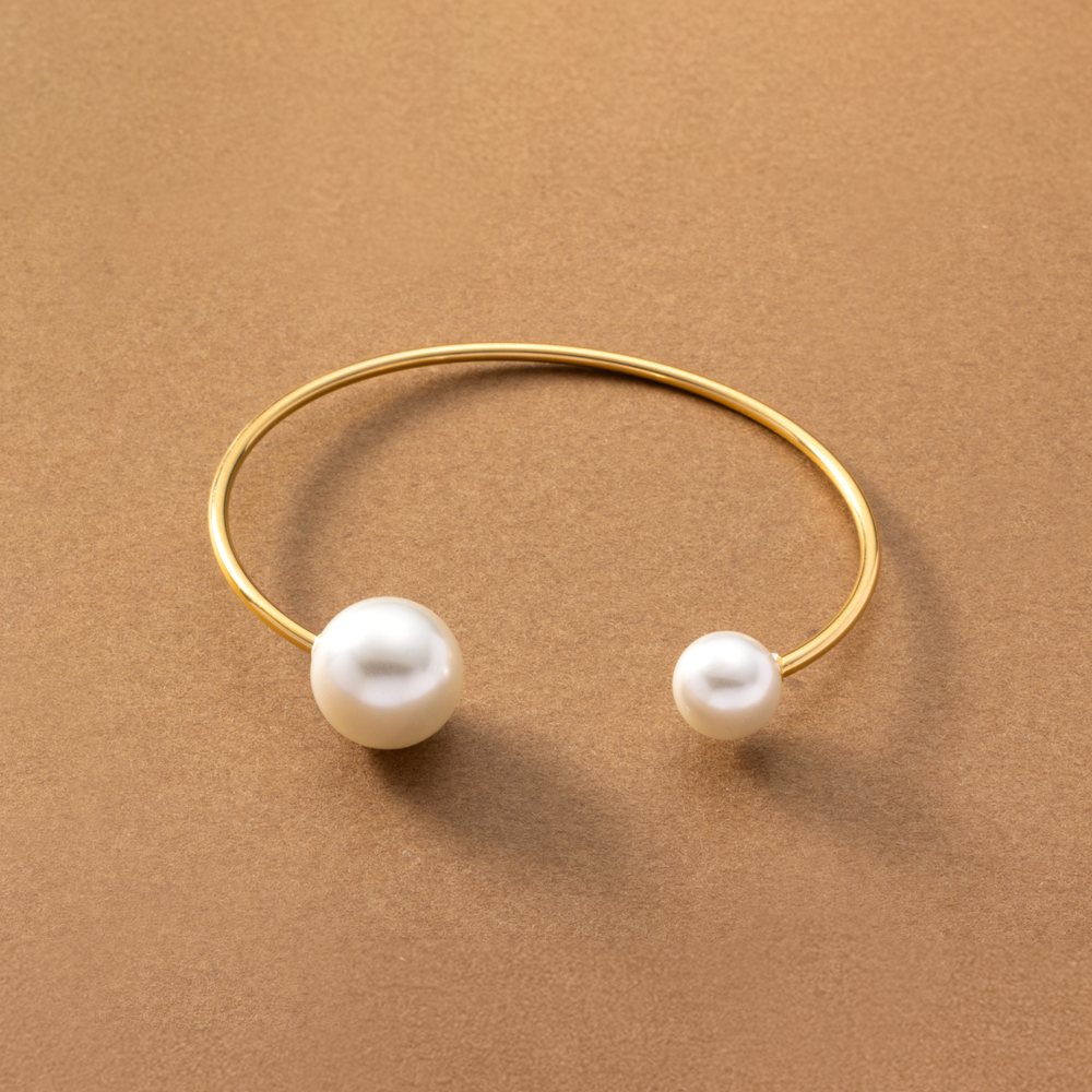 華奢なメタルバングルにパールが艶めくバングル。カジュアルにもキレイめにもコーディネートしやすいシンプルシルエットでデイリーに活躍◎曲がる素材で仕上げており、若干のサイズ調整が可能です。