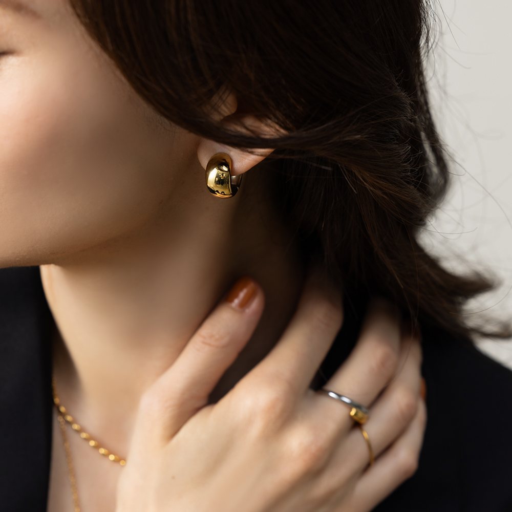 2タイプから選べる、ぷっくりフォルムのバネ式カフイヤリング。しっかり挟めるから落下防止にもなり着脱楽チンでピアス見えするデザイン◎錆びにくく傷に強いステンレス製でデイリーに活躍間違いナシのアイテムです。