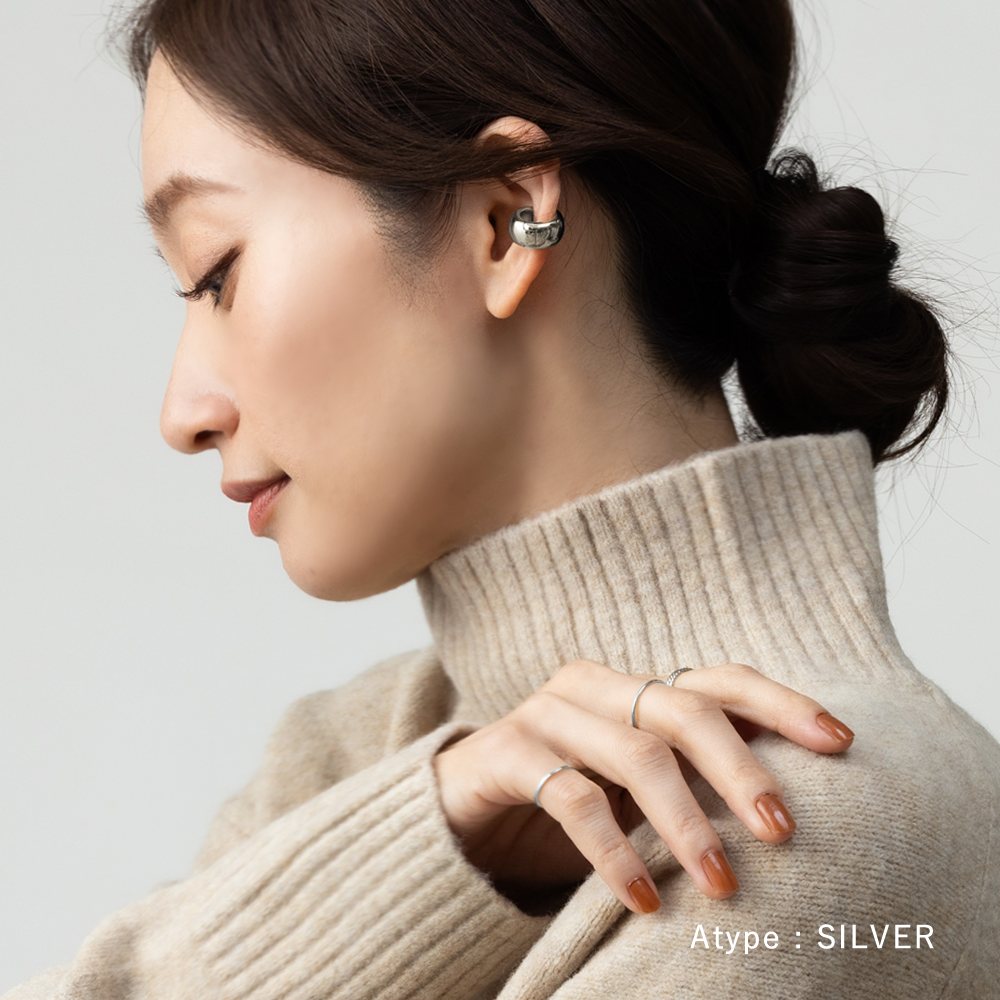 カフイヤリングだけでなくイヤーカフとしてもアレンジを楽しめる2wayアイテム。バネ式だから耳たぶの厚みを気にせずご着用頂けます。