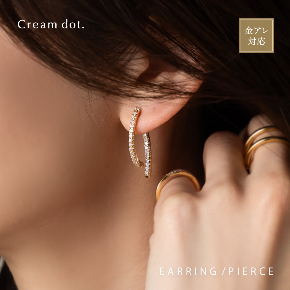 どの角度から見ても大人可愛いバックキャッチイヤリング/ピアス。ビジューラインがお顔周りを華やかに魅せ、グッとこなれた印象を演出します。イヤリングは落ちにくく軽い着け心地のシリコンパッド付きで、使いやすいのも嬉しいひと品。