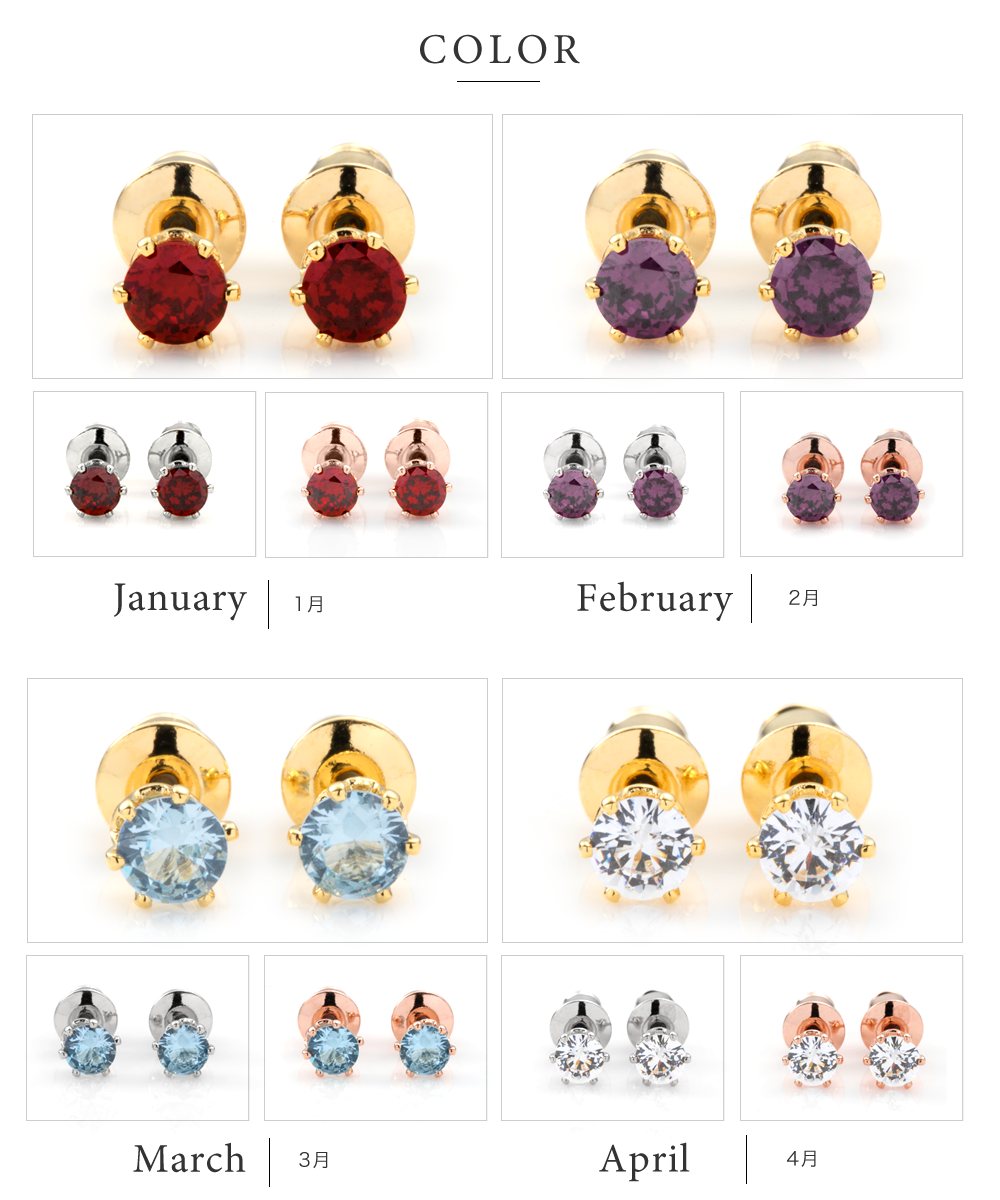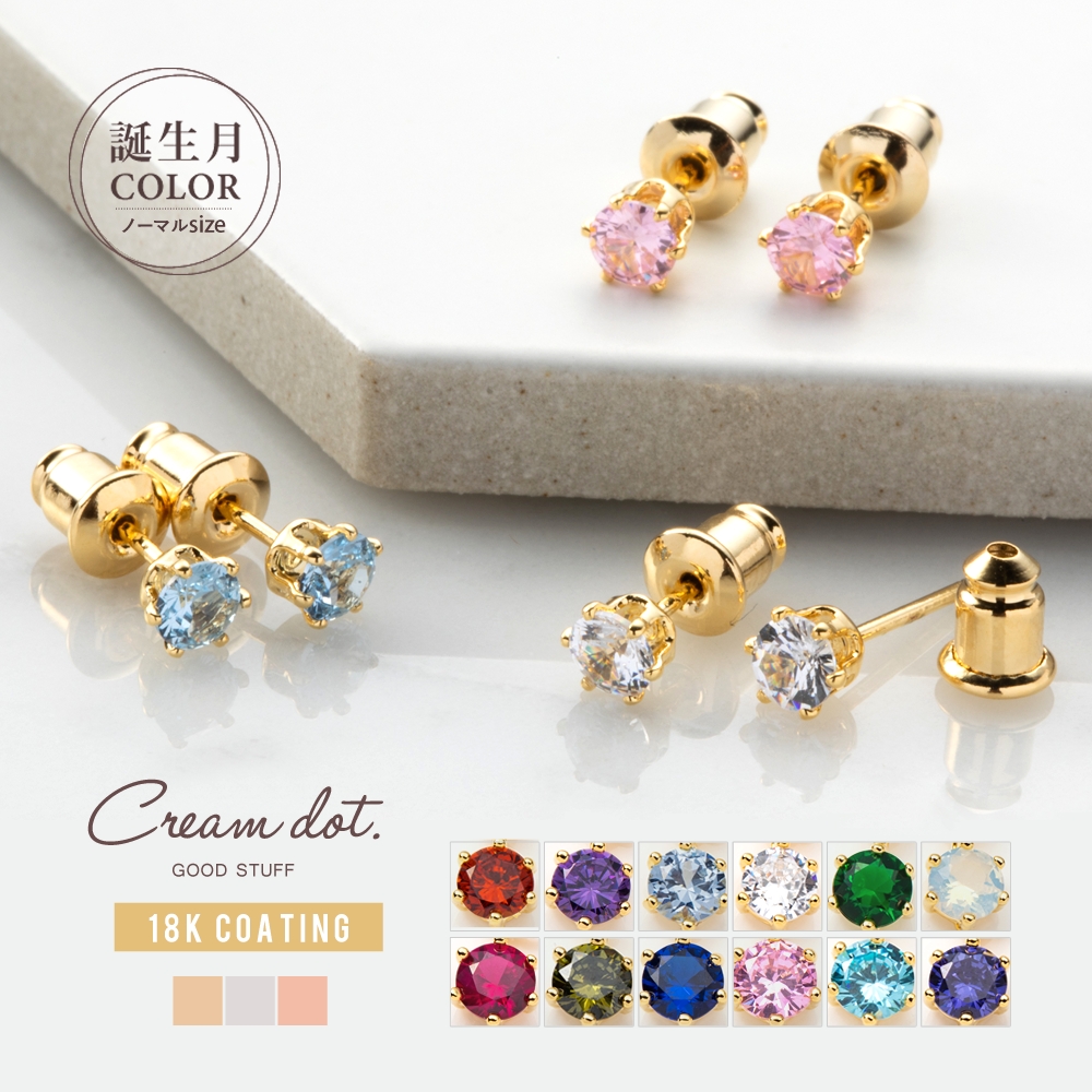 【本日限定!全品10%OFFクーポン】ピアス 18kコーティング レディース 誕生月カラー 誕生色 一粒ビジュー 大人 華奢