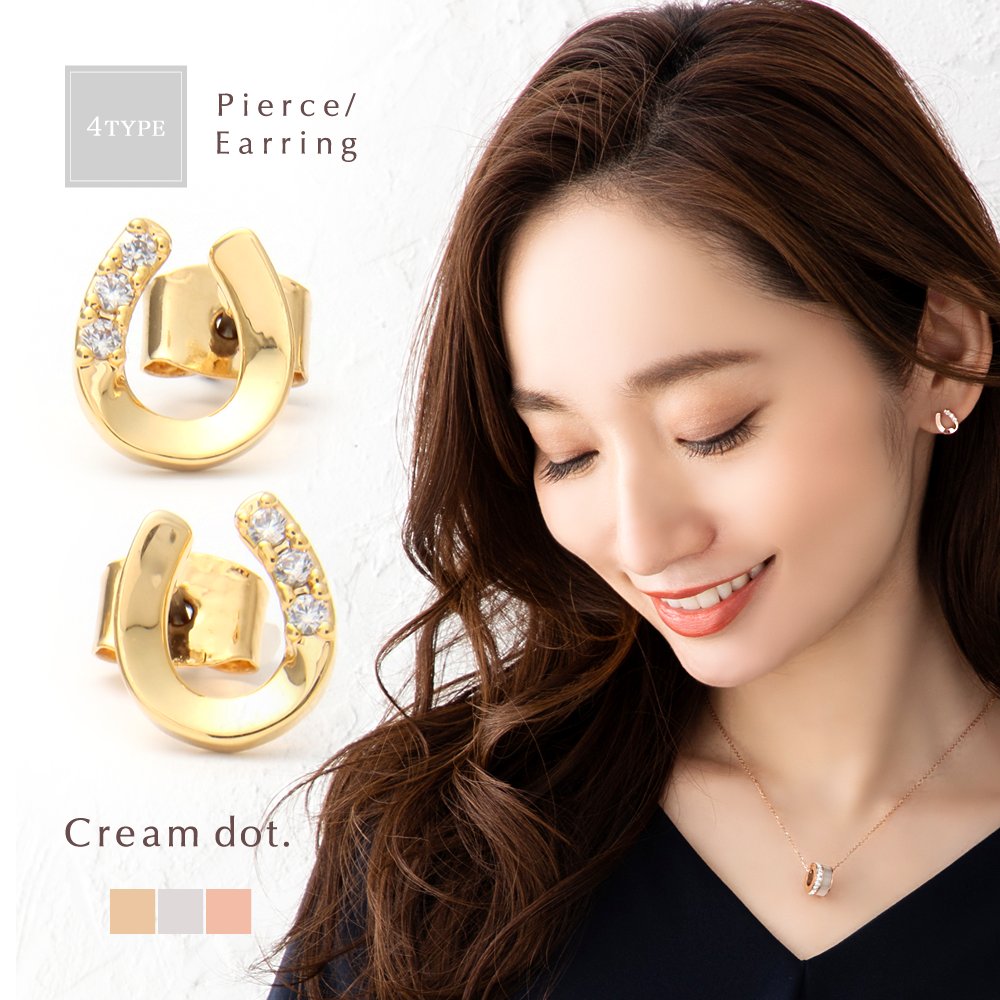 幸運をもたらすと言われるホースシュー(馬蹄)モチーフにビジューをあしらった4タイプのピアス/イヤリング。主張しすぎないシンプルなモチーフが上品な印象で、幅広いスタイリングにマッチするアイテムです。