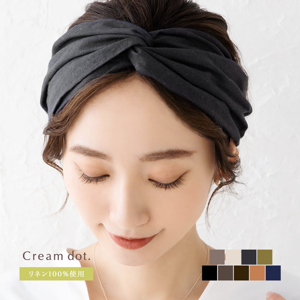 ヘアターバン ヘアバンド 幅広 リネン100% レディース クロス ツイスト ワイド 大人 ヘアアクセサリー ゆうパケット送料無料