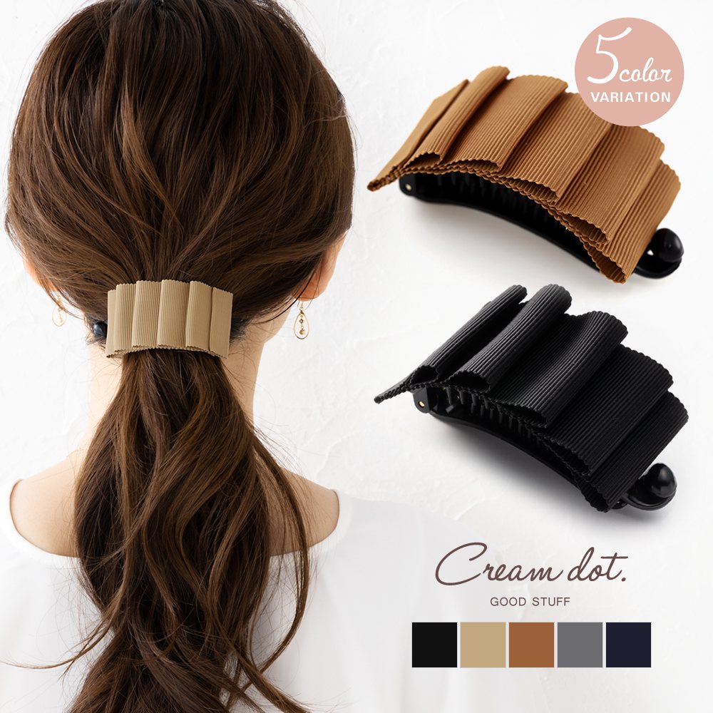 程よい華やかさと“きちんと感”を併せ持つ、グログランリボンのバナナクリップ。アーチ型なので束ねた髪にさっと挟むだけの簡単装着が嬉しいポイント。甘すぎない落ち着いたデザインなのでオフィスにも◎