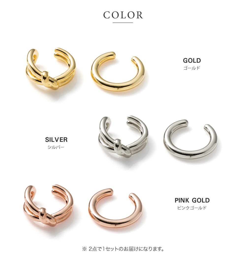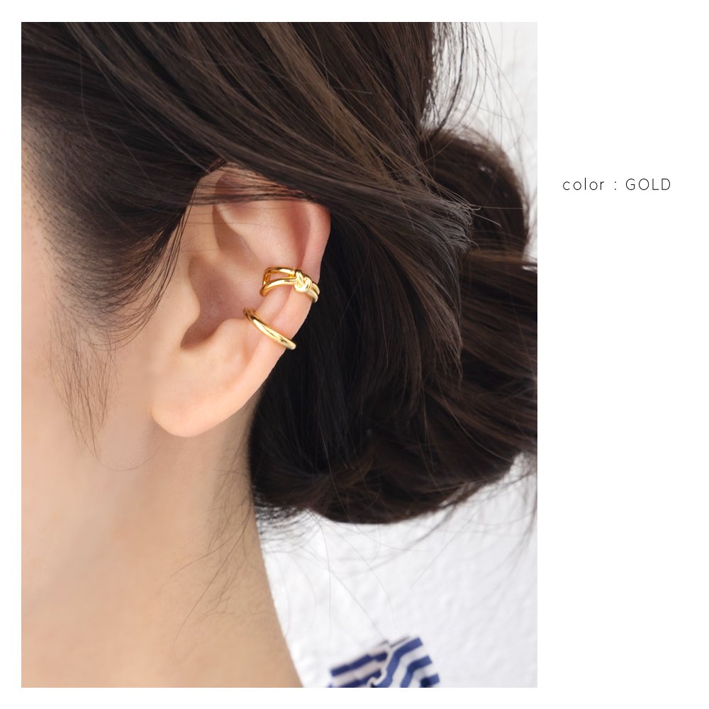 ★2点30%OFFクーポン対象★ 2点セット イヤーカフ 金属アレルギー ニッケルフリー イヤカフ イヤリング 片耳用 メタル ノット 結び目 大人 outlet