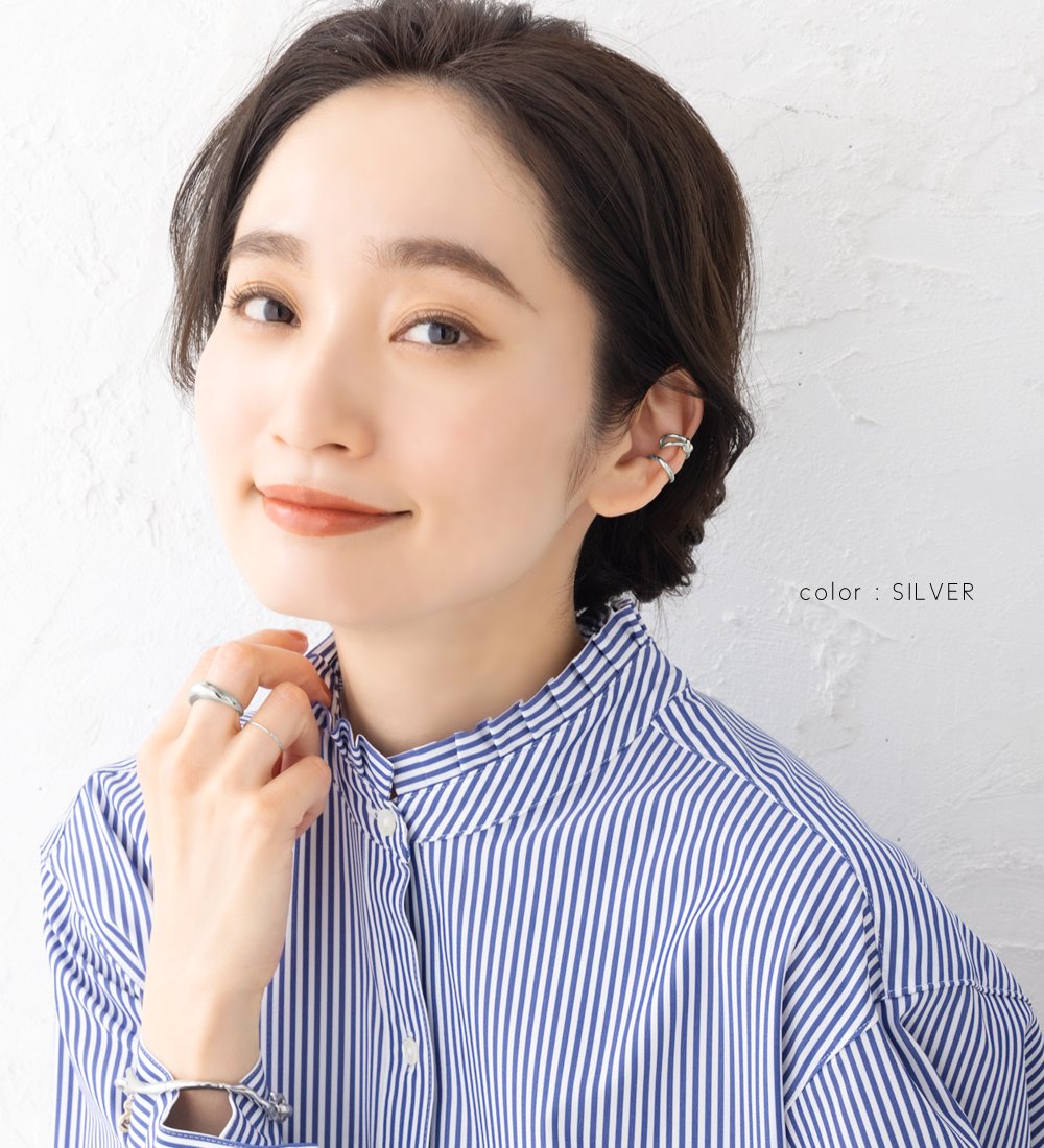 ノット&フープの片耳用2セットイヤーカフ。さりげないノットモチーフが品よくこなれた印象に仕上げてくれます。 シンプルだから、デイリーコーデにも合わせやすいアイテムです。重ね着けはもちろん単品でも使えるのが嬉しい◎