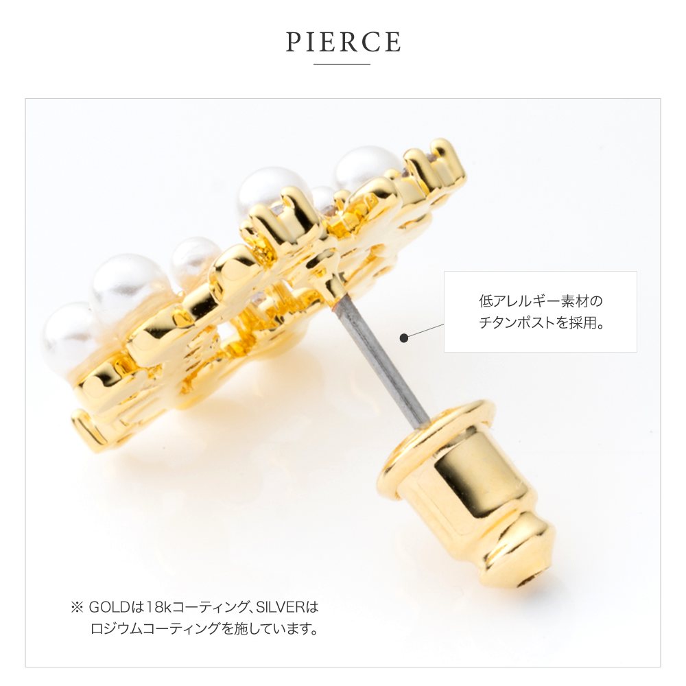 ★2点30%OFFクーポン対象★ イヤリング ピアス 18kコーティング チタンポスト ビジュー パール リーフ 葉 フラワー 花 サークル 大人 outlet