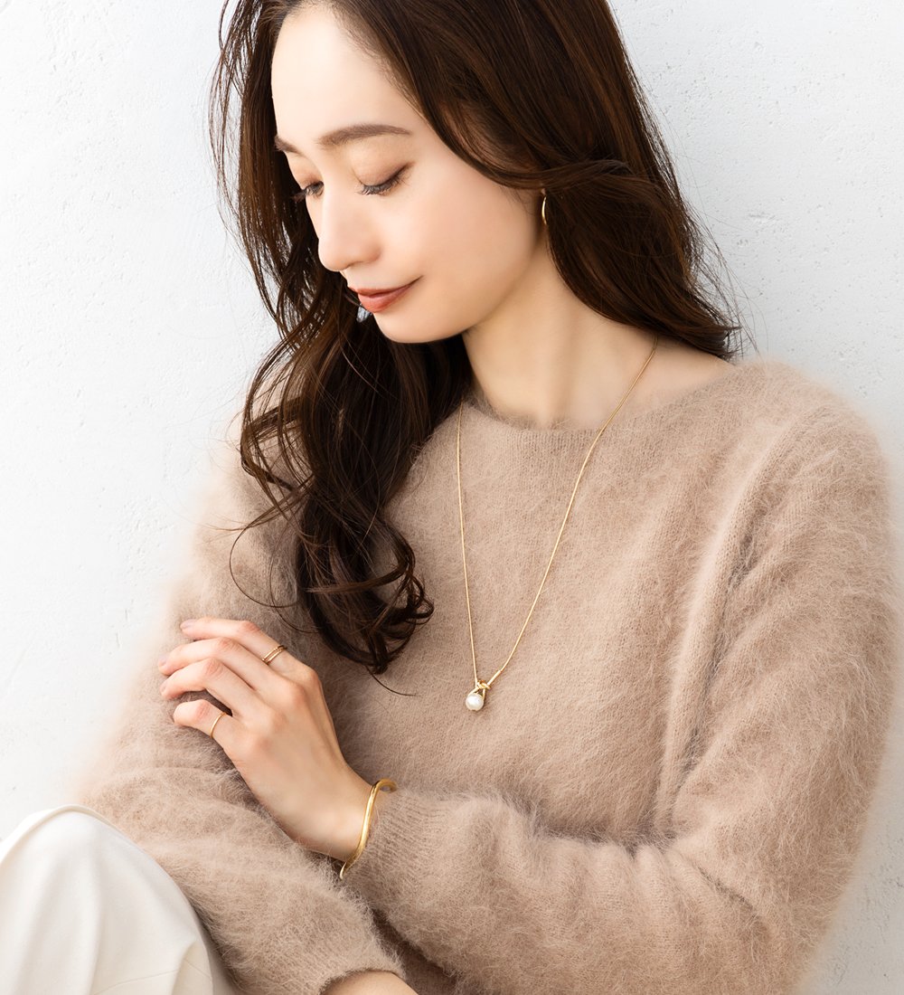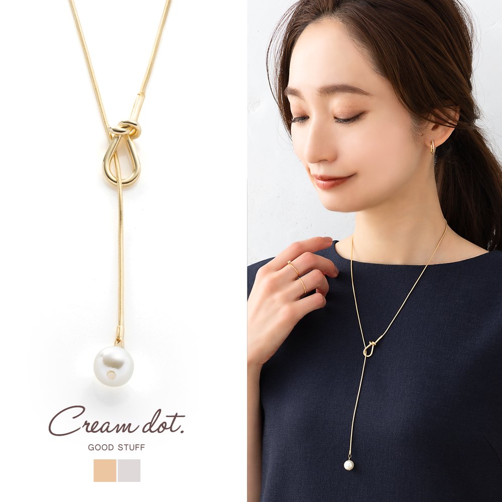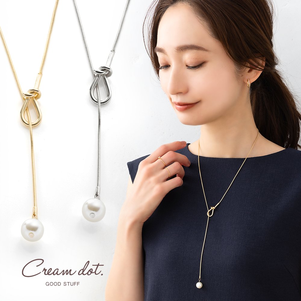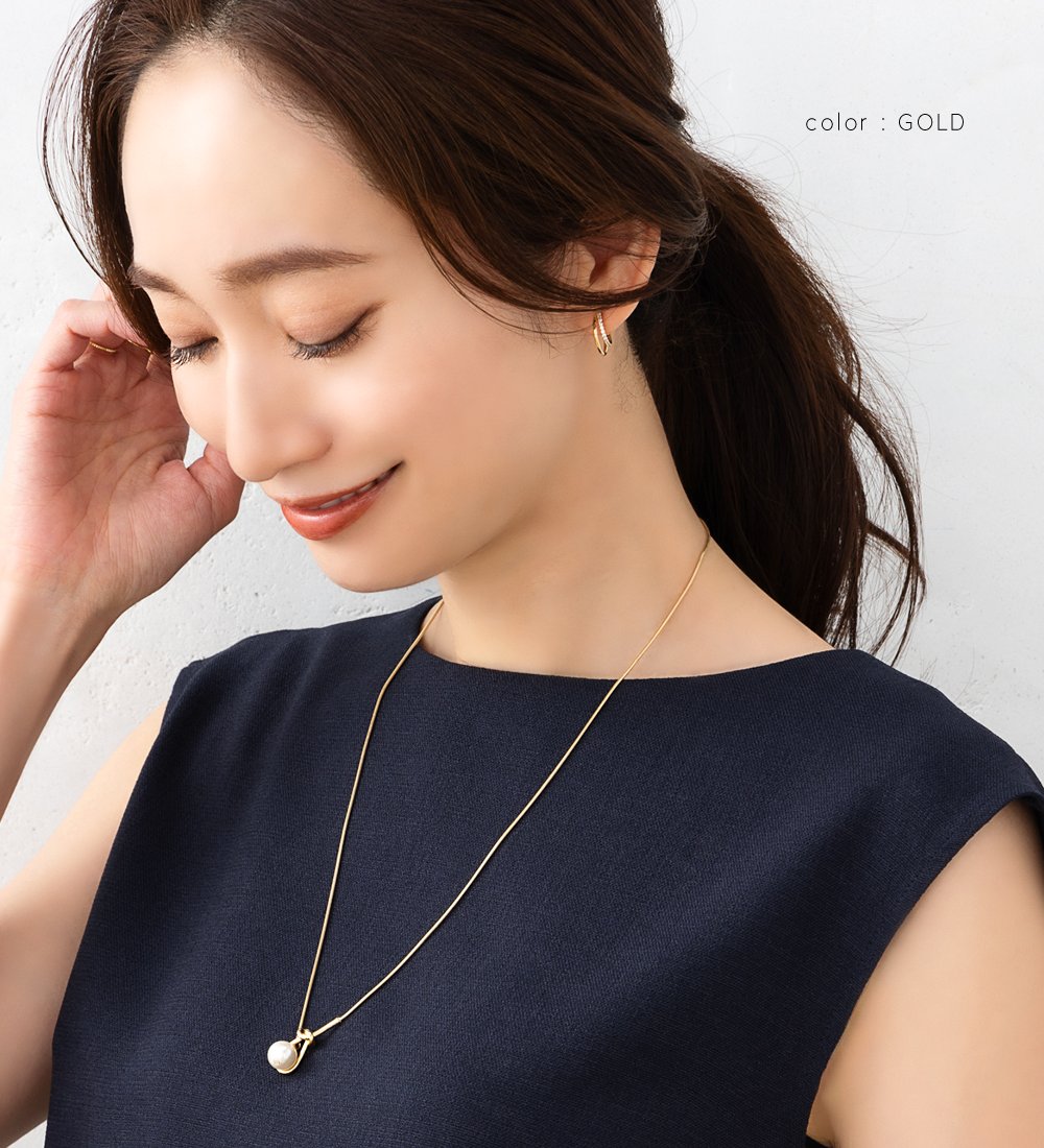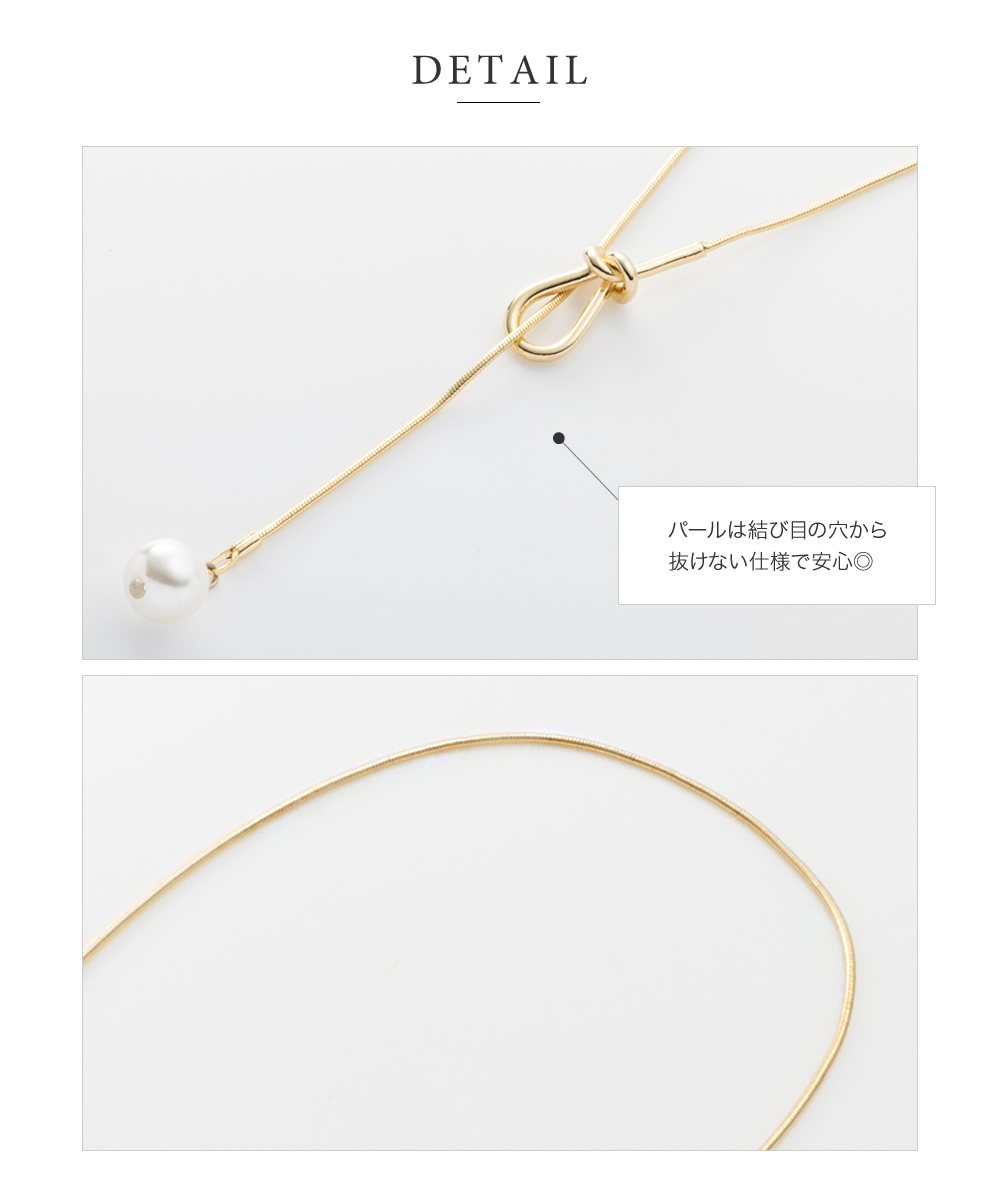 シンプルで洗練された大人っぽいノット×パールのY字ロングネックレス。スネークチェーンとさりげないモチーフが品よくこなれた印象に◎大きめパールだから抜け落ちず、お好みの長さに調節してコーデを楽しめます。