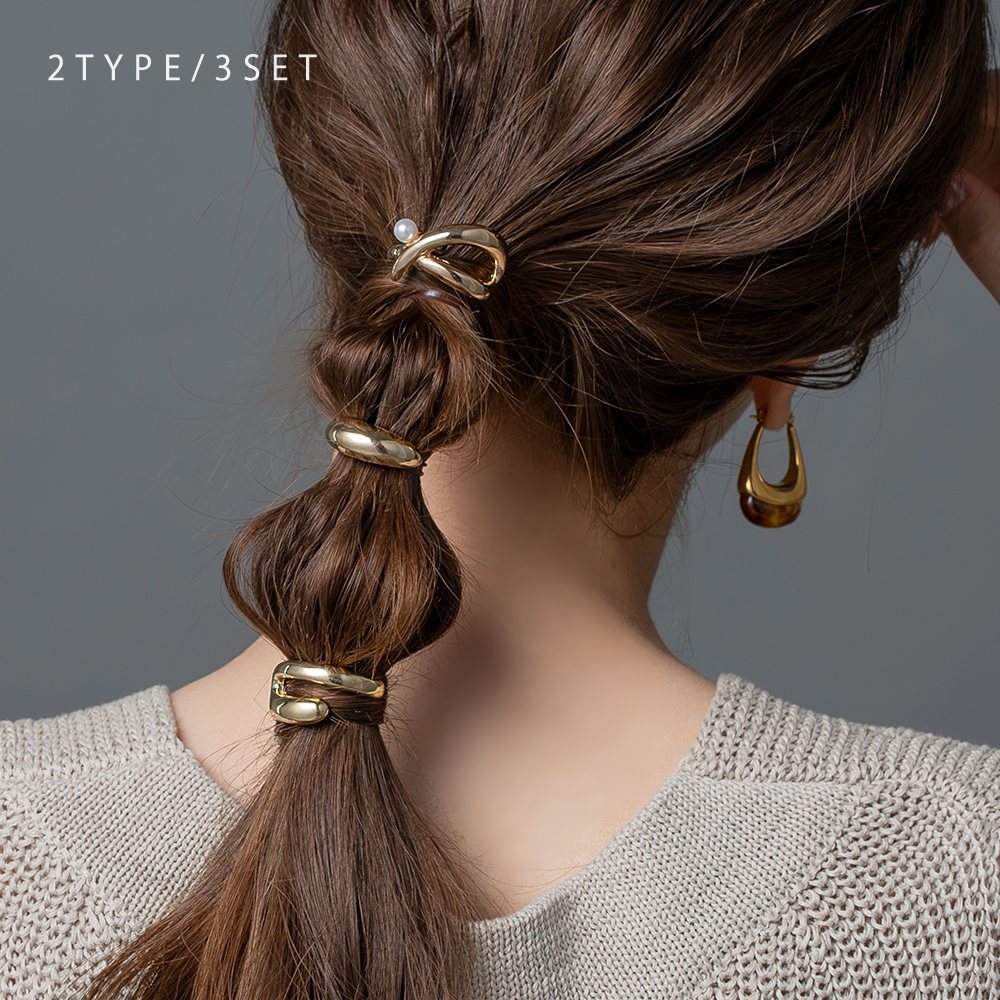クロスとオーバルの2種類から選べる3セットポニーフック。編み下ろしや玉ねぎアレンジに飾るだけで旬のヘアが完成します。それぞれニュアンスのあるデザインなので、単品使いも◎これひとつでぐっとコーデの幅が広がりそう。