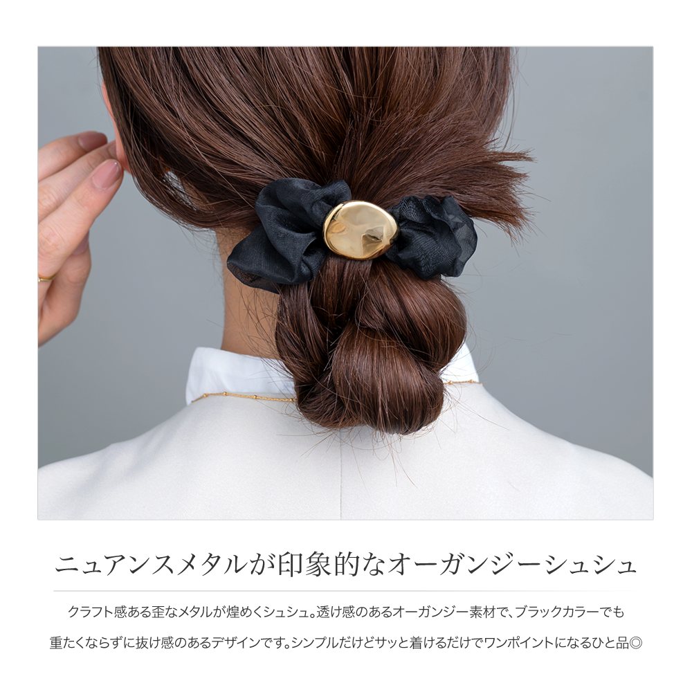 【最大1,000円OFF★初売りクーポン】シュシュ メタル オーガンジー 透け感 シフォン チュール ヘアゴム ヘアアクセ ヘアアレンジ 簡単