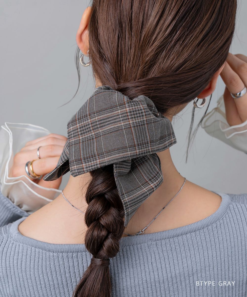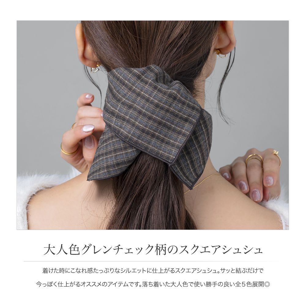 シュシュ スクエアシュシュ グレンチェック柄 大きめ ボリューム 四角 ヘアゴム ヘアアクセ ヘアアレンジ 簡単 ゆうパケット送料無料