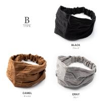 異なる2タイプの生地から選べるワイドヘアターバン。くしゅくしゅとした肌触りの良い生地が大人のリラクシーなスタイルにぴったり◎シックなカラーリングで身に着けやすいアイテムです。