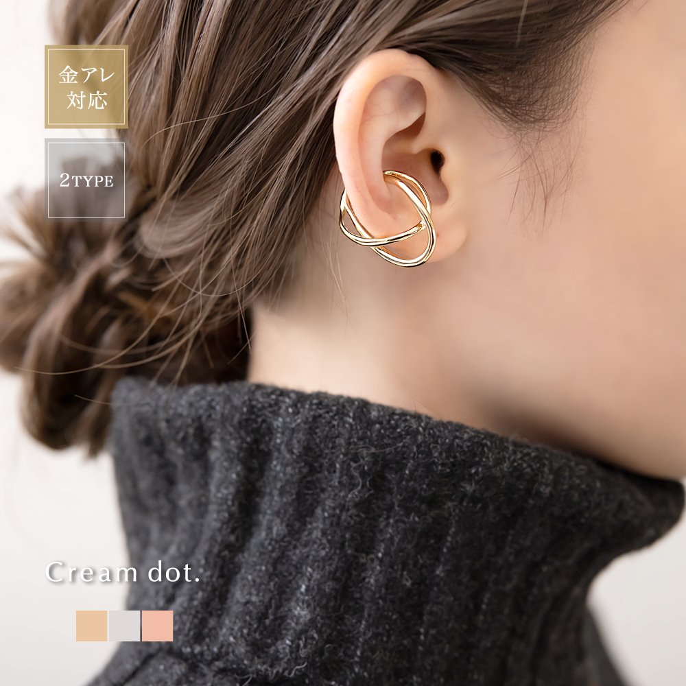 イヤーカフ レディース 金属アレルギー 18kコーティング イヤカフ 片耳用 メタル 大ぶり クロス ゆうパケット送料無料
