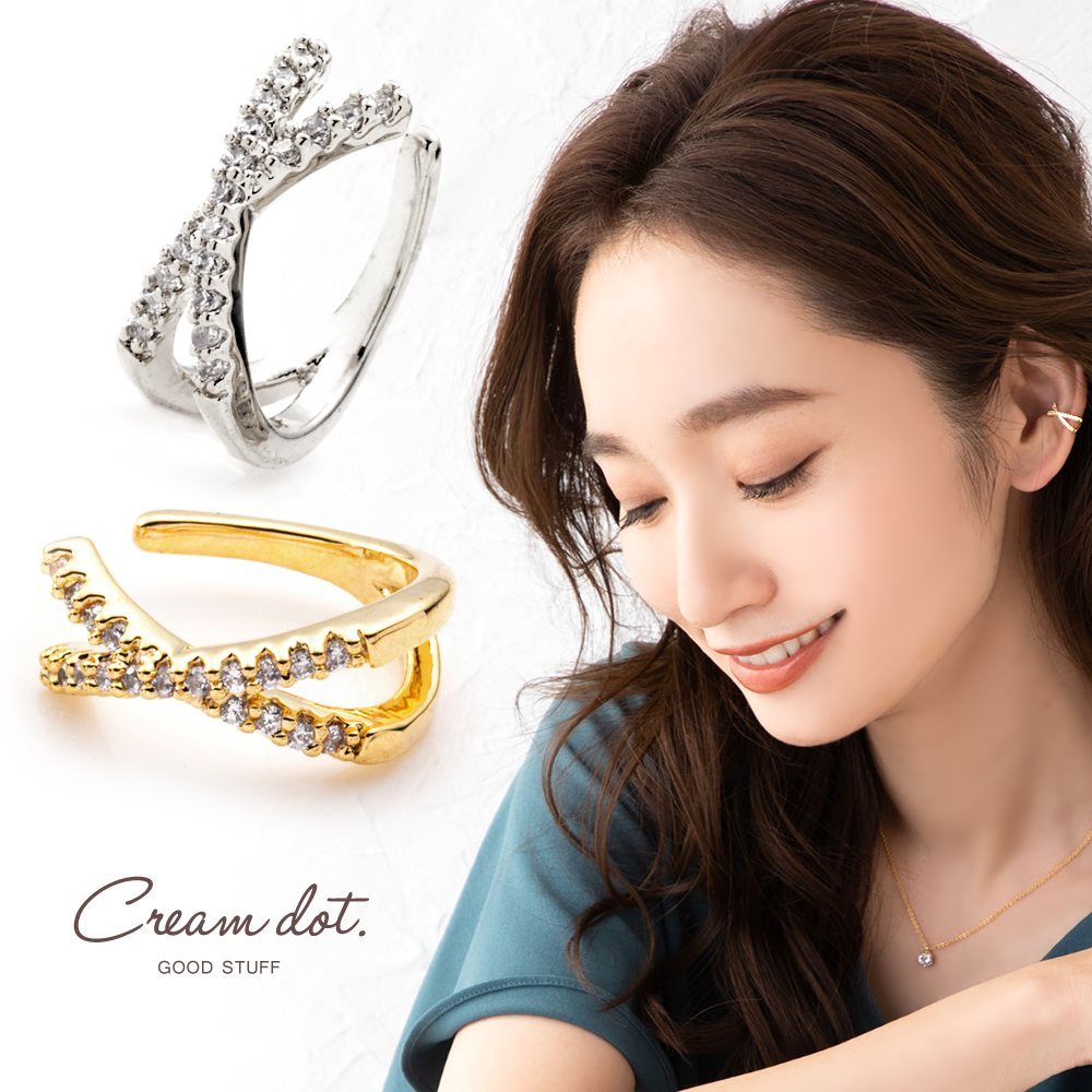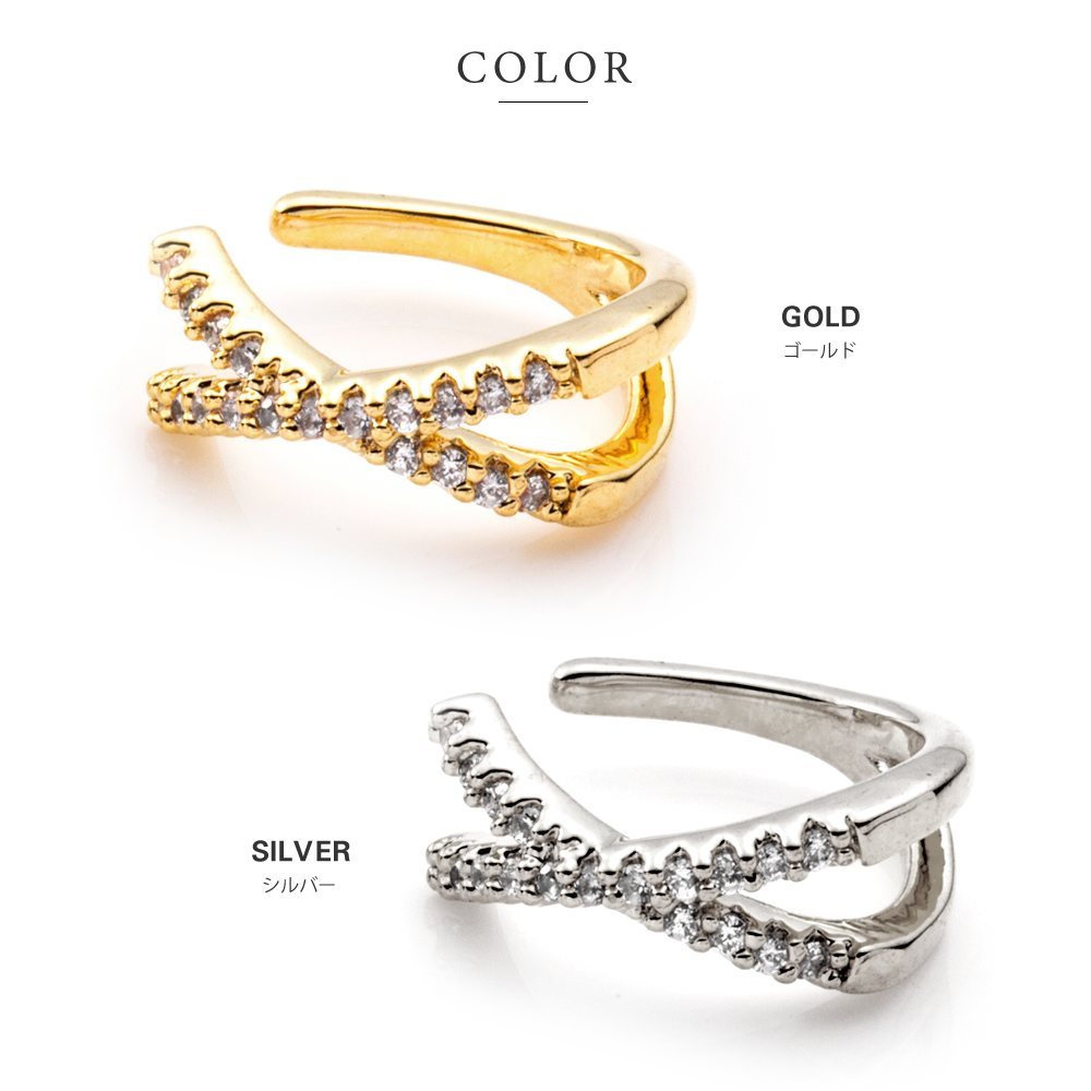 2つのビジューラインがクロスした片耳用イヤーカフ。キラキラと繊細に煌めく小粒ジルコニアと程よいサイジングでオトナっぽく上品な仕上がりに◎普段のコーデをアップデートしてくれるマストアイテム。