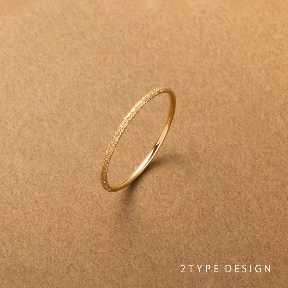キラキラと繊細に煌くスターダスト加工を施した華奢リング。優しい印象の甲丸タイプと、ほんのりシャープな平打ちタイプからお選び頂けます。シンプルなシルエットでお手持ちのリングとのコーディネートにも活躍します◎錆びにくいステンレス製でデイリーにぴったり。