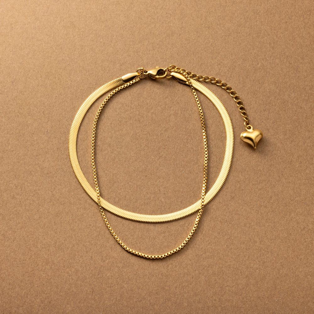 動く度に足元で繊細に煌めき、大人の抜け感を演出するアンクレット。レイヤード風デザインにぷっくりしたハートが大人可愛いアクセントに◎錆びにくいステンレス製でデイリーに活躍するシーズンライクなアイテムです。