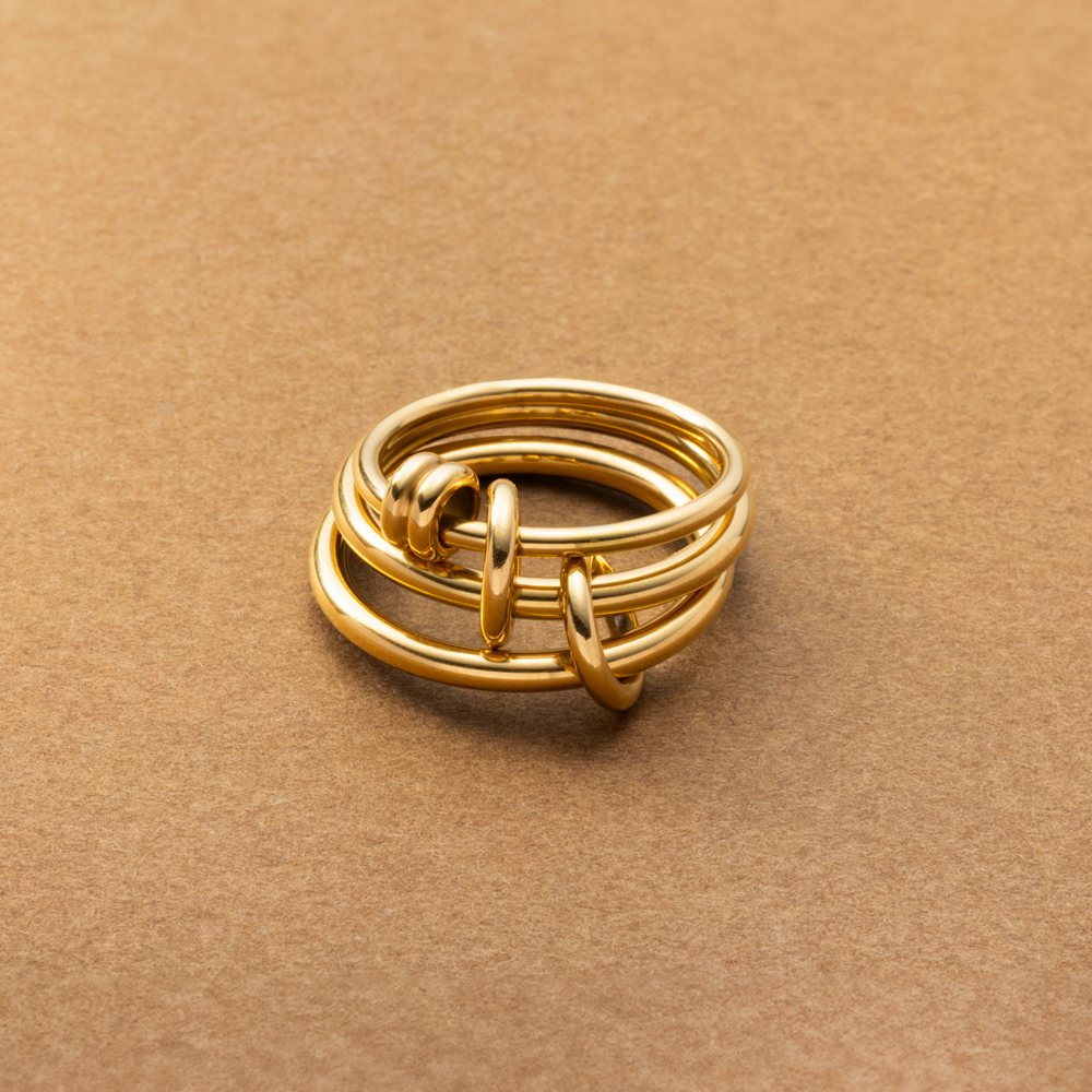 3本のリングを連結させたコネクテッドリング。全て重ねてボリュームを出したり、それぞれ違う指につけたりと4WAYでアレンジを楽しめる新感覚のアクセサリーです。これひとつで手元コーデの幅がグッと広がるマストバイアイテム◎錆びにくく傷に強いステンレス製です。