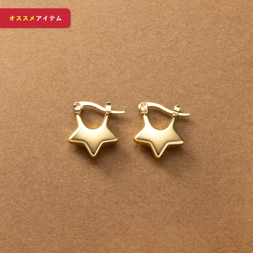 小ぶりでぷっくりとしたスターモチーフのキャッチレスピアス。さりげないデザインの星が、コーデにエッジの効いたアクセントとこなれた印象を演出します。程よく個性的なフォルムが遊び心をくすぐられるひと品◎