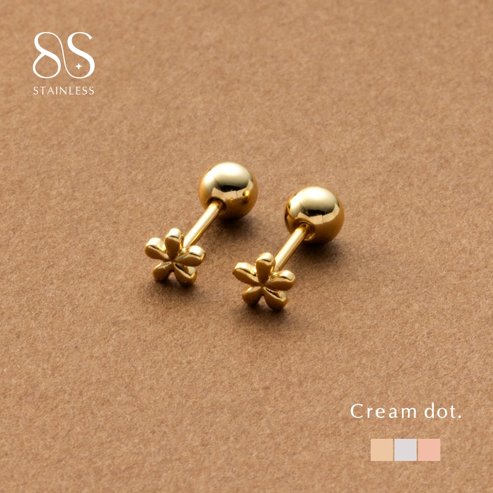 マイクロフラワーのステンレス製スクリューロックピアス。ミニミニフラワーが可憐な印象に◎メタルボールのキャッチで目立ちにくく気にならないのも嬉しいひと品。シングルはもちろんカフと重ね着けにもオススメです。錆びにくいステンレス製でデイリーに活躍しそう。