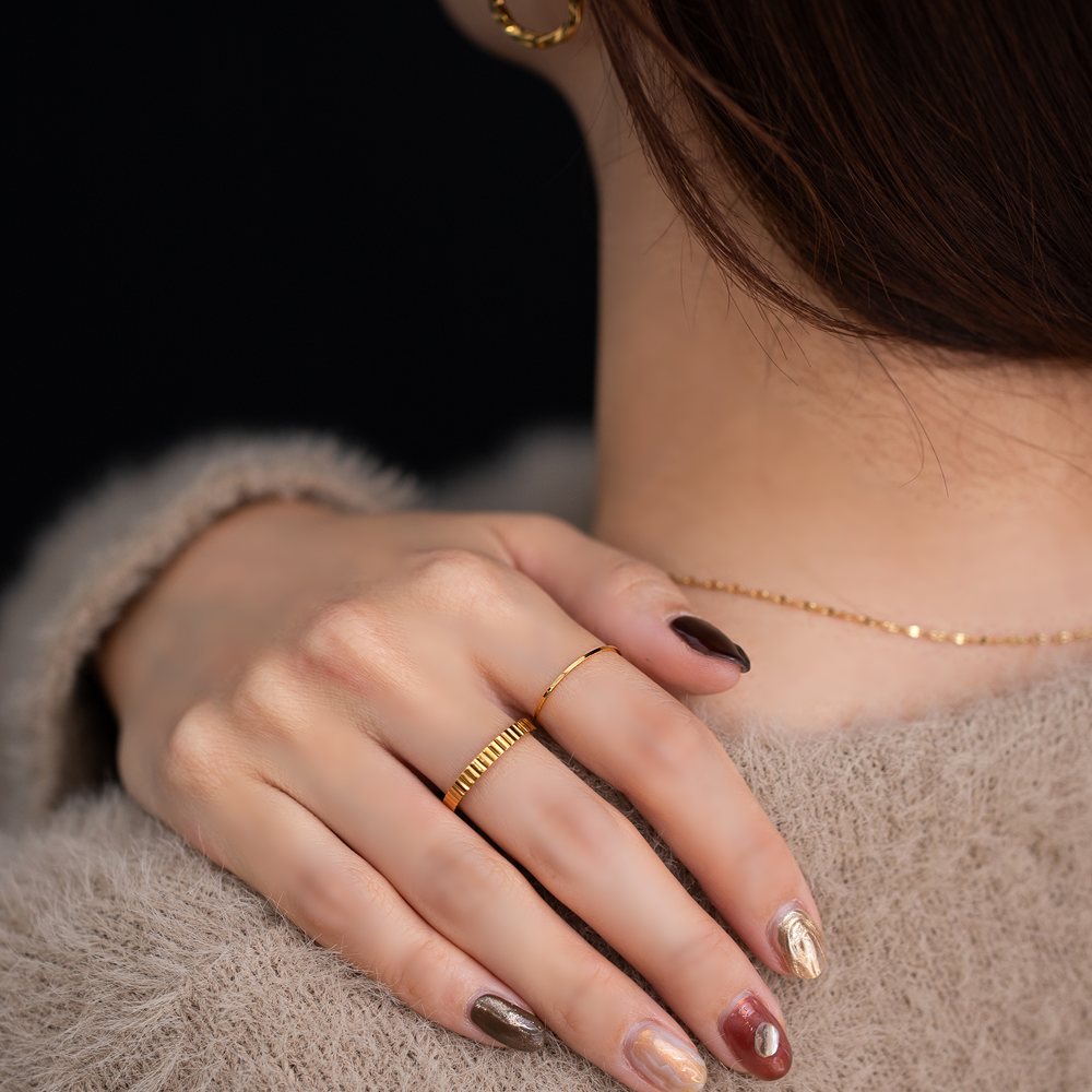 0.5mm幅で華奢なラインのシンプルデザインリング。素肌にすっと馴染み、さりげなく輝くスキンジュエリーとして活躍してくれます。単品使いはもちろん重ねづけもお楽しみいただけます。7号〜23号の豊富なサイズ展開も嬉しい◎錆びにくく傷に強いステンレス製で、長時間の着用も安心の低アレルギー素材です