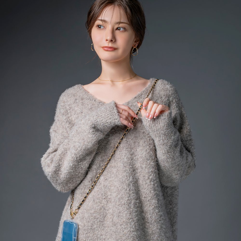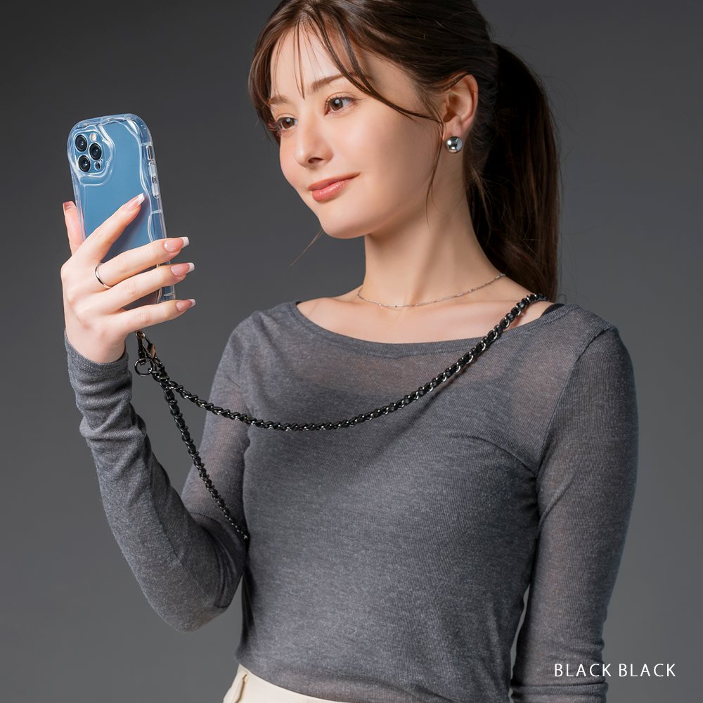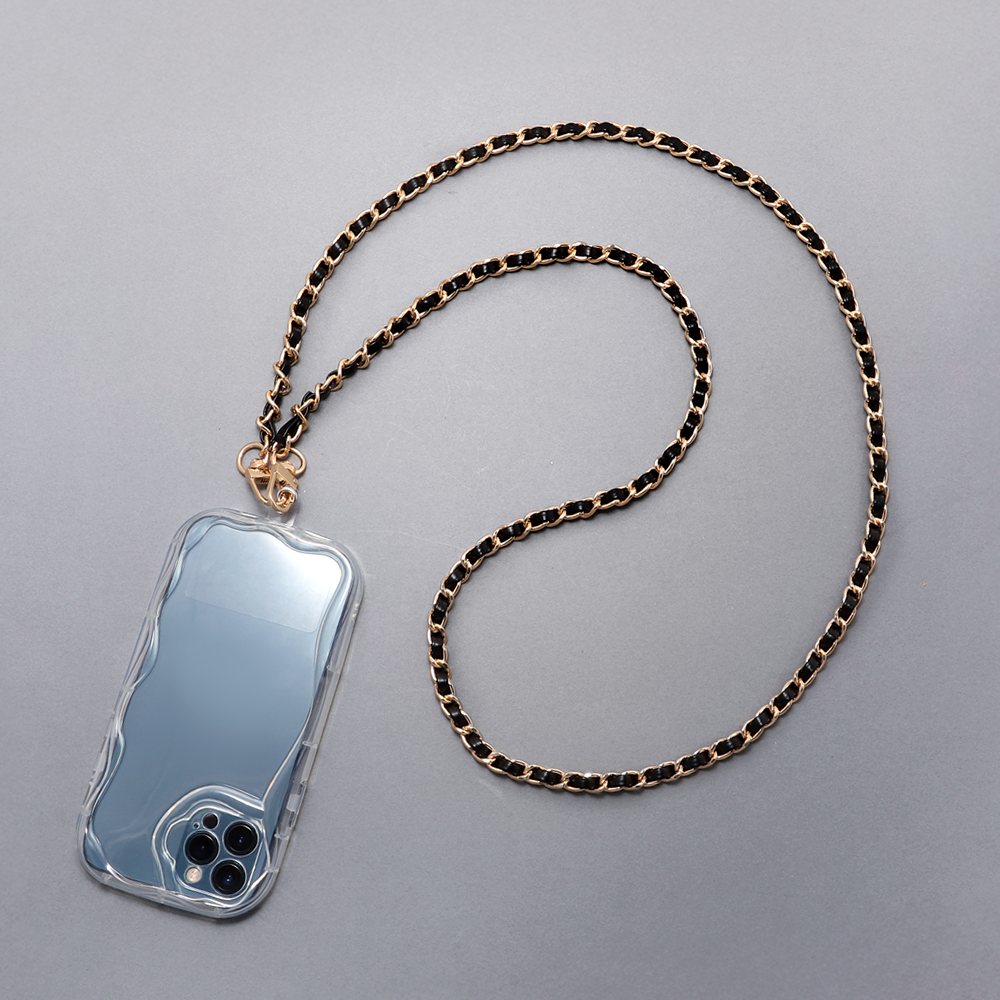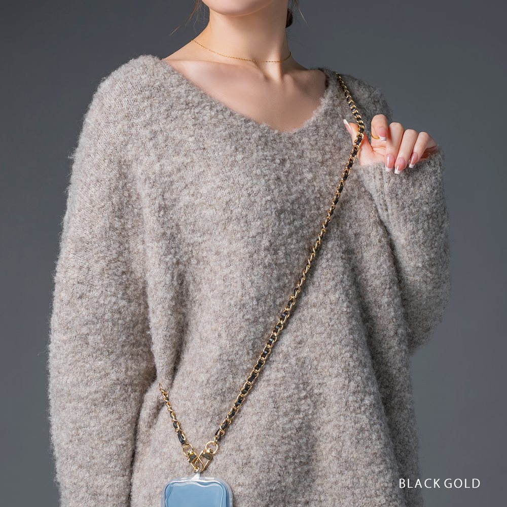 チェーンとフェイクレザーの組み合わせがこなれ感たっぷりなスマホショルダー。程よく重厚感のあるデザインでコーデにもアクセントを添えるひと品。オシャレも便利さも叶うデイリー使いにピッタリなアイテムです。