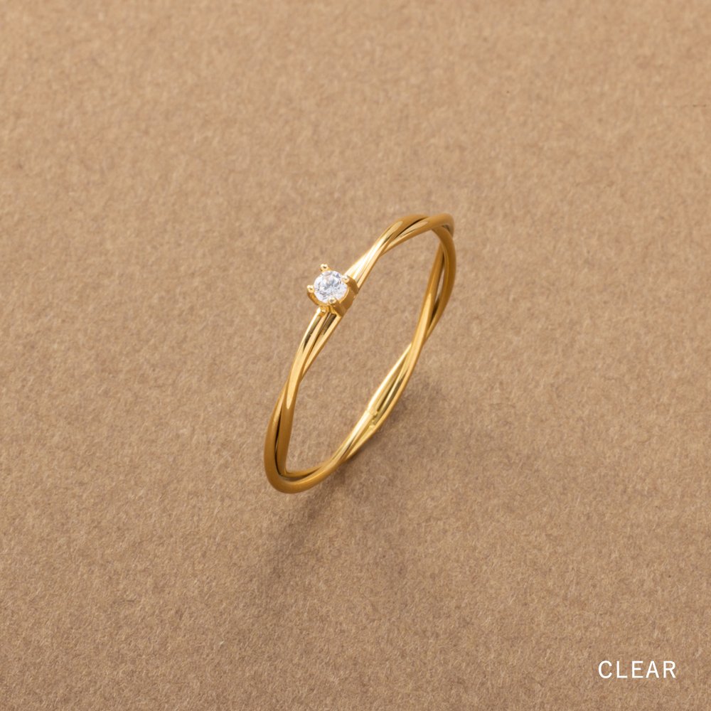 緩くツイストした台座にきれい色ストーンが煌めくデザインリング。華奢なシルエットだから、お手持ちのリングとの重ねづけも楽しめます◎錆びにくく傷に強いステンレス製で、デイリーに活躍してくれます。長時間の着用も安心の低アレルギー素材です。