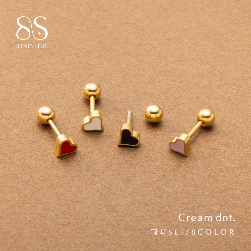 カラーのハートモチーフが大人可愛いネジロック式スタッドピアス。大人らしい甘さをプラスできるカラバリと控えめなサイジングが◎メタルボールのキャッチで目立ちにくくスマートなのも嬉しいpoint♪錆びにくく傷に強いステンレス製で、長時間の着用も安心の低アレルギー素材です。
