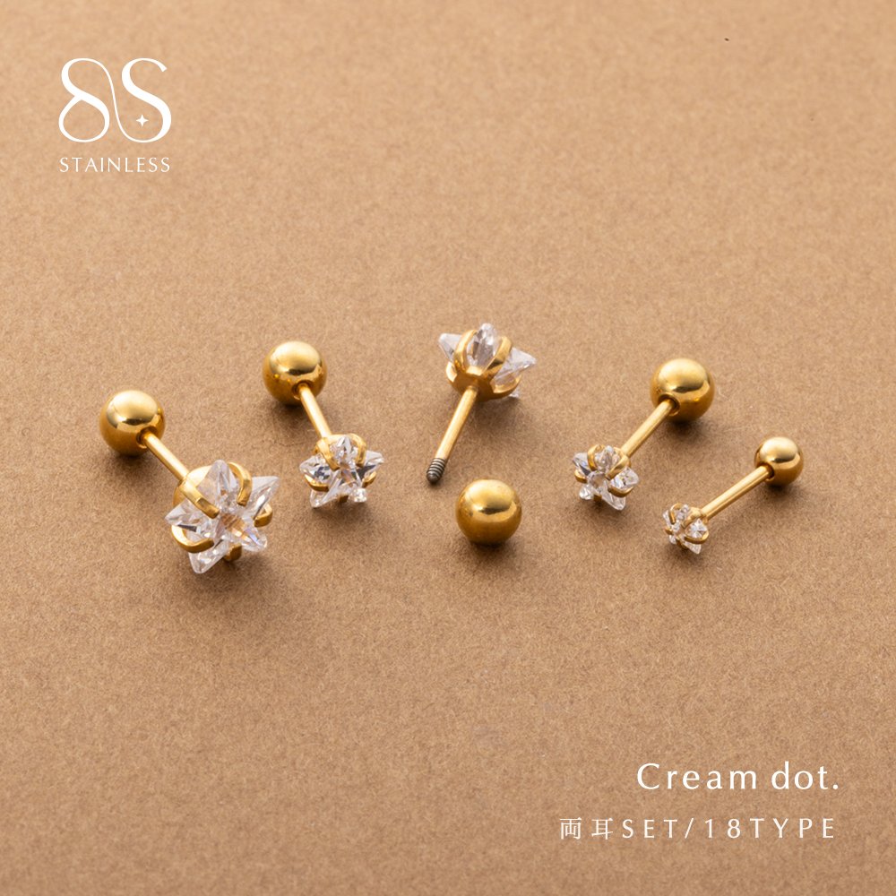 3mm〜8mmのスタービジューが選べるネジロック式スタッドピアス。小粒なメタルボールのキャッチでスタイリッシュなひと品。低アレルギー素材のステンレス製で、デイリーに活躍してくれるアイテムです。
