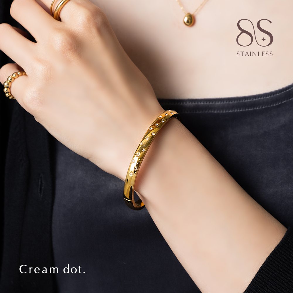 【本日限定!全品10%OFFクーポン】ステンレス製 バングル 金属アレルギー つけっぱなし セグメントビジュー ドットビジュー スター 星 開閉式 メタル