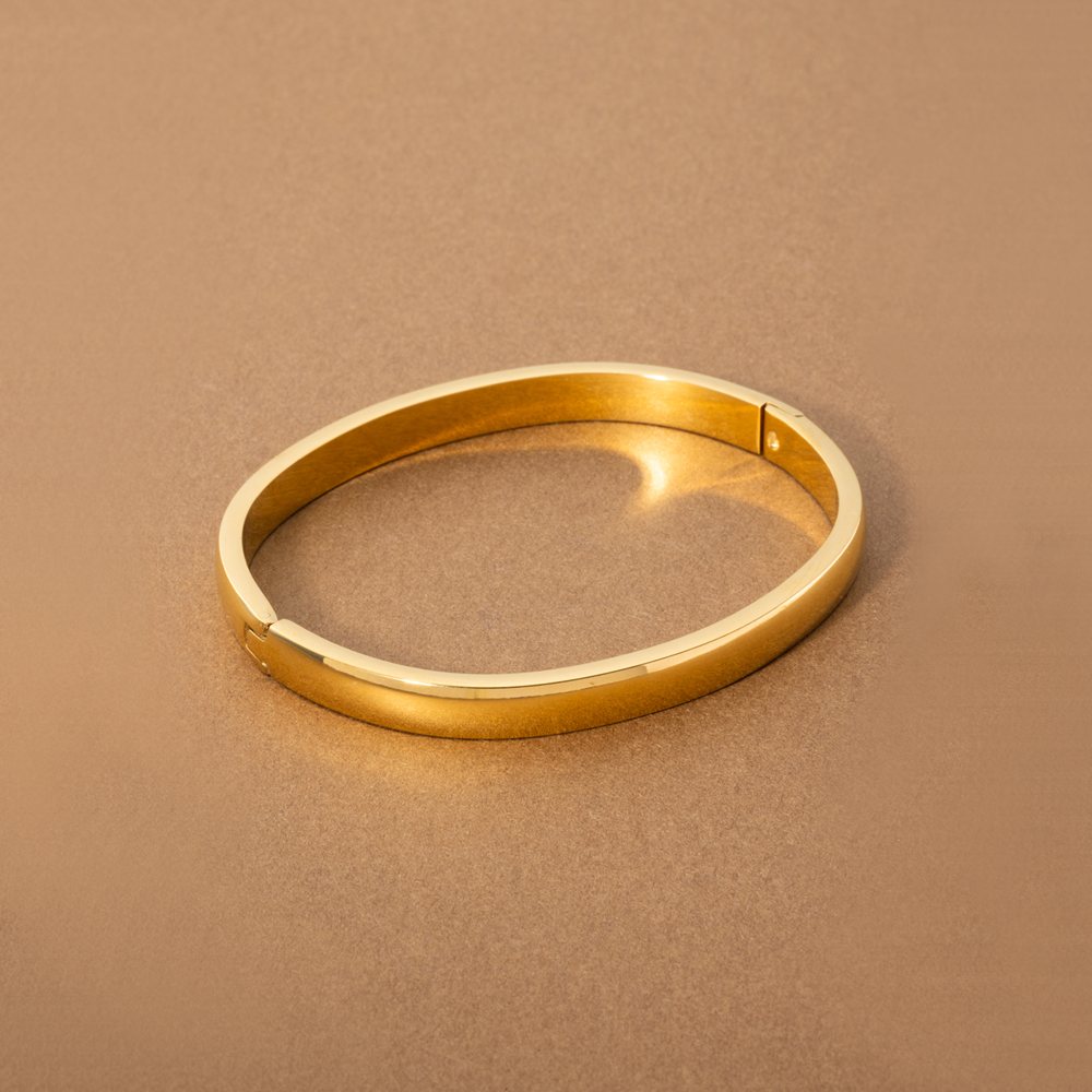 スターカッティングに埋め込まれたセグメントビジューが煌めく開閉式バングル。存在感あるフォルムと輝くビジューがアクセントに◎錆びにくく傷に強いステンレス製で、長時間の着用も安心の低アレルギー素材です。